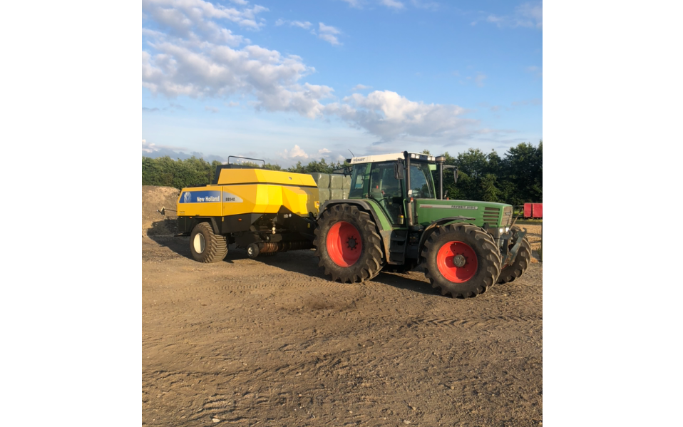 Presning af tørt hø og halm i minibig i 90*90 cm. Med eller uden snitter. Der køres med DLG crobra extra bindegarn for ekstra holdbarhed samt ballevogn med plads til 5 styks