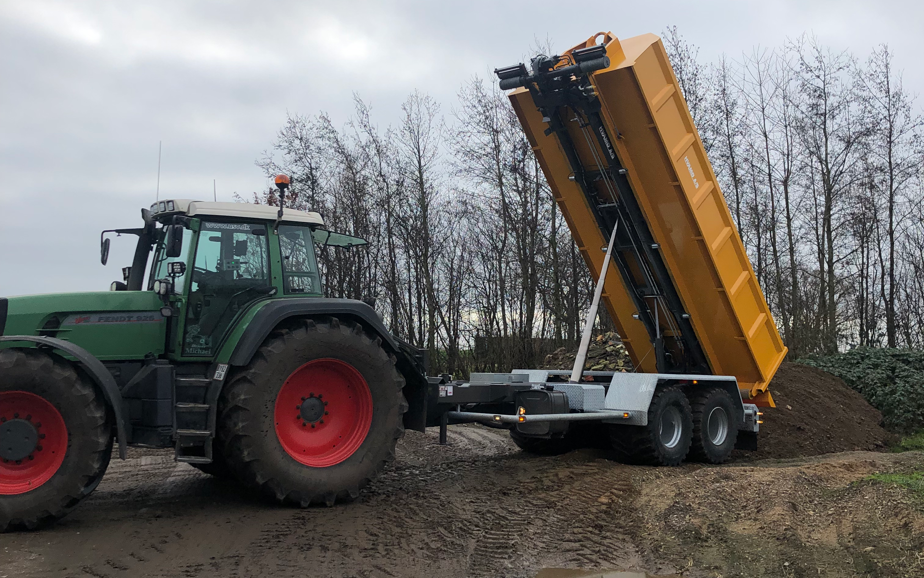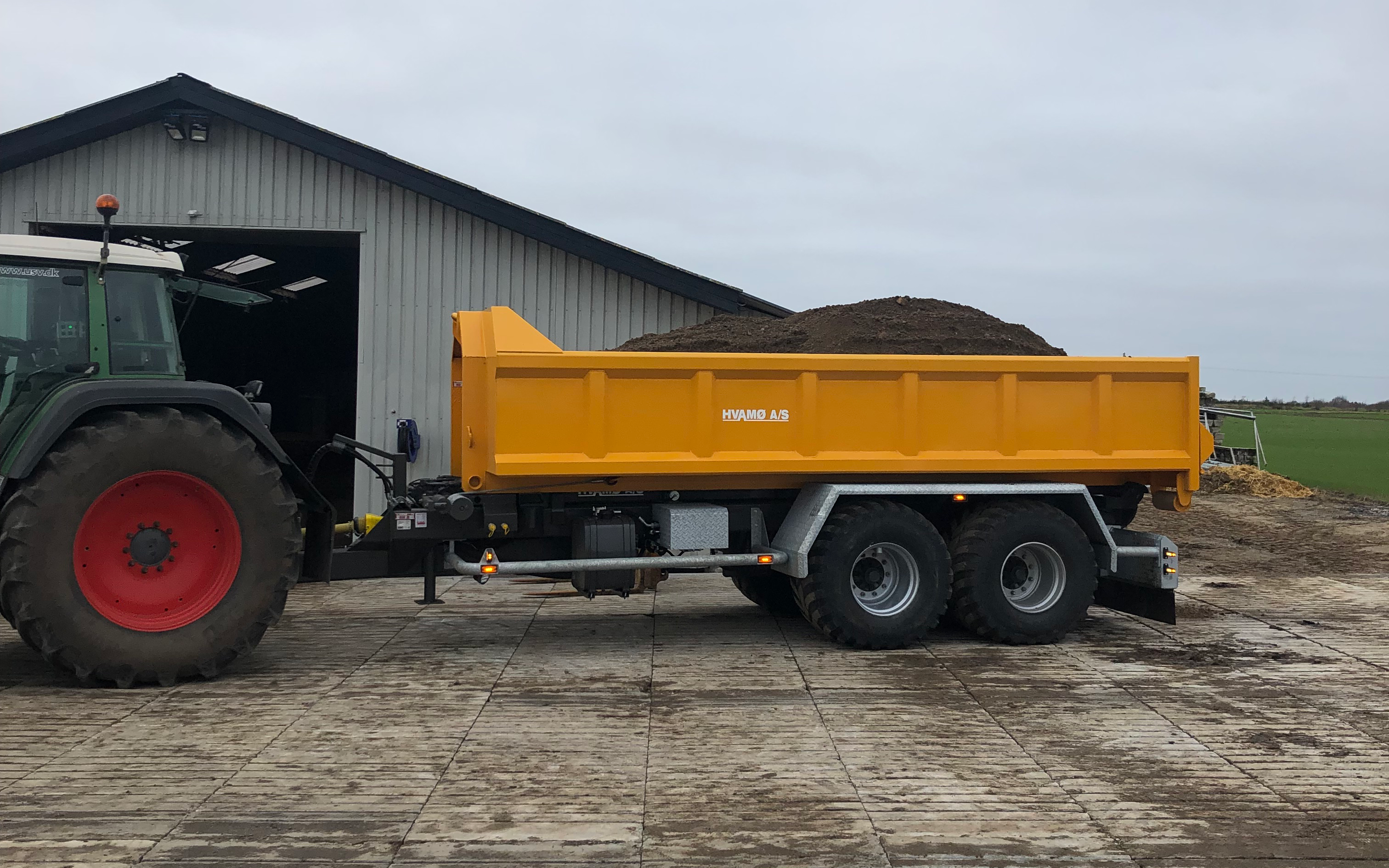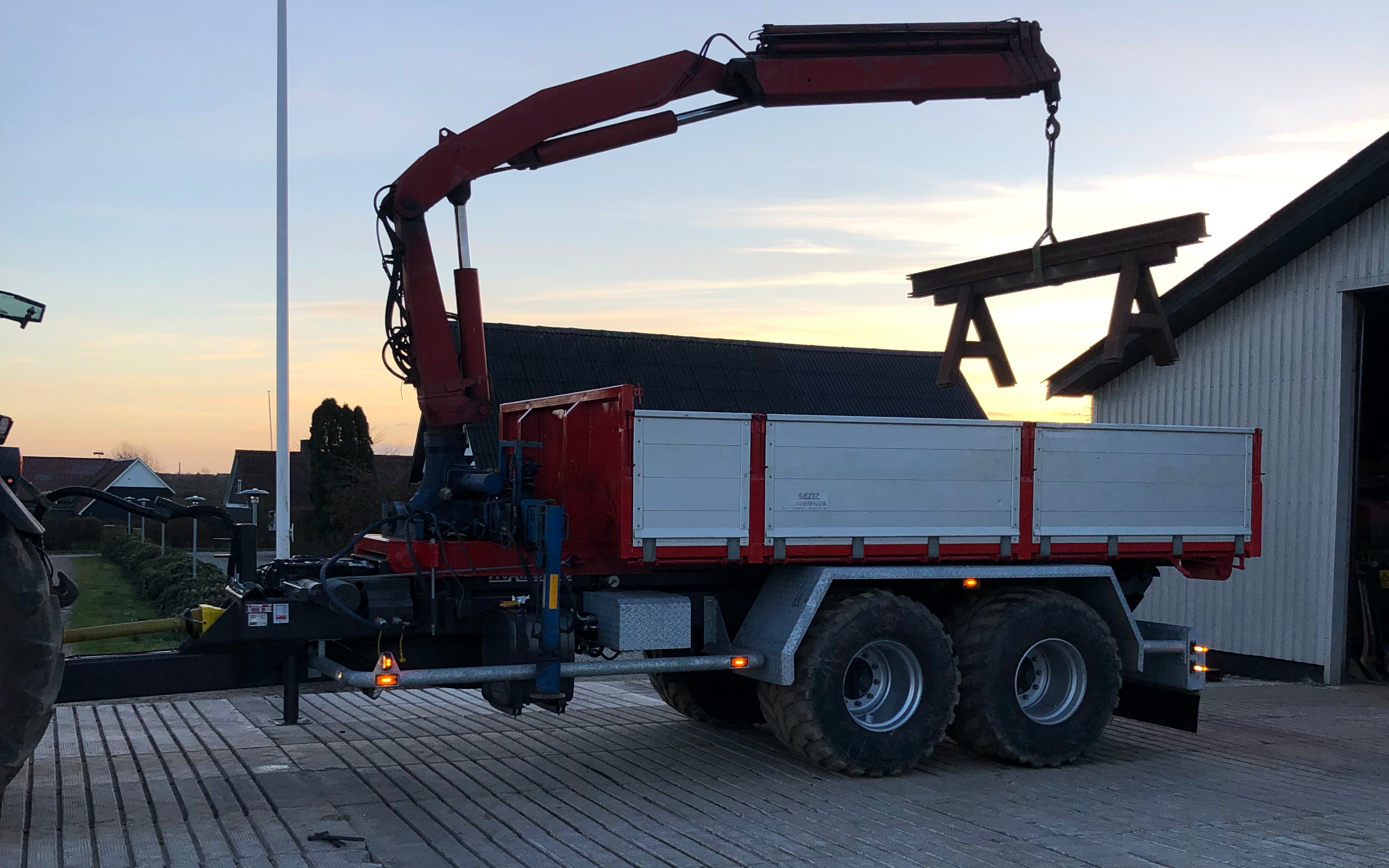 Køresel med Hvamø Wirehejs vogn med 710 mm brede hjul for bedre bæreevne, container i alle størrelser haves, også en med 15 tonsmeter kran på.