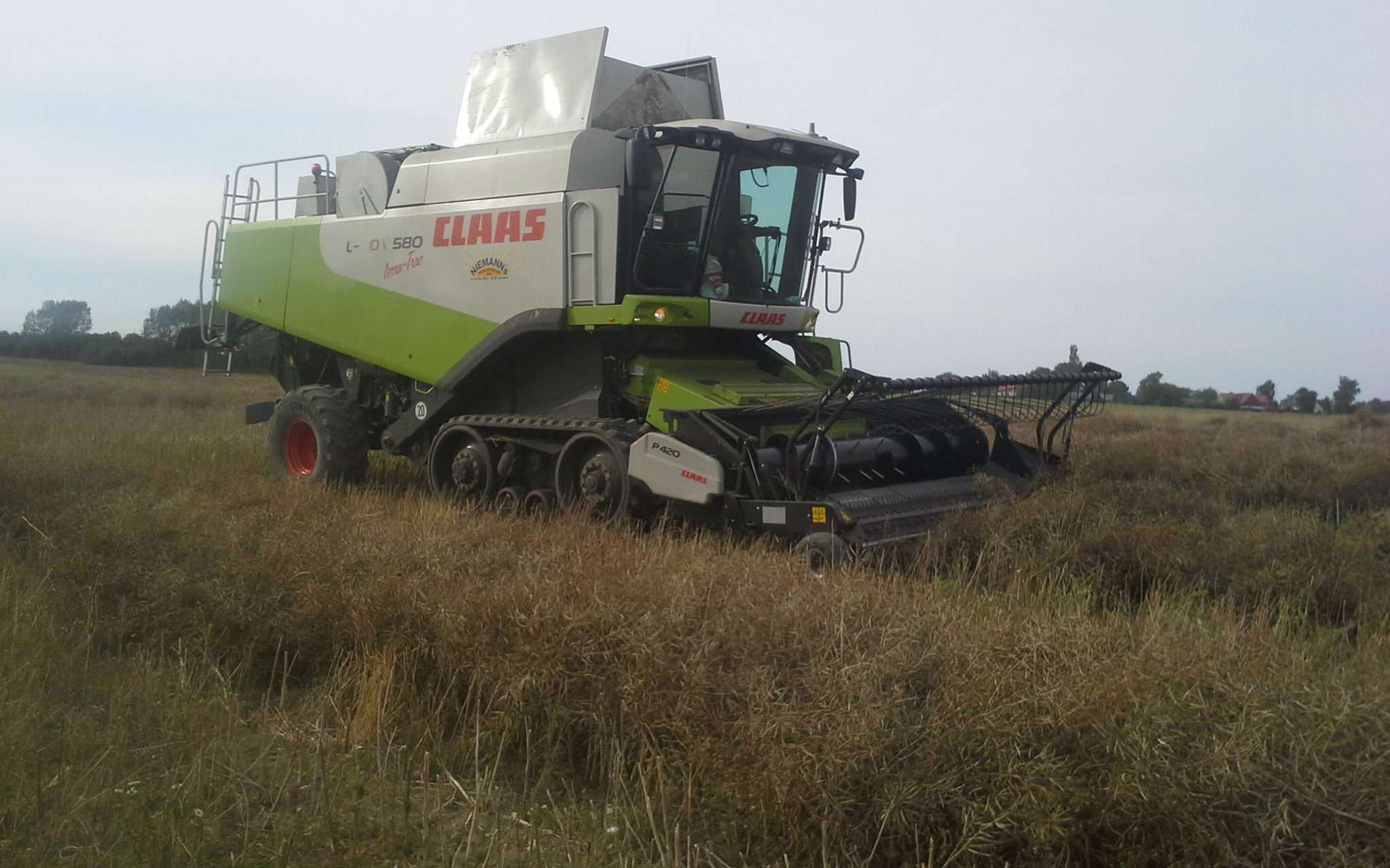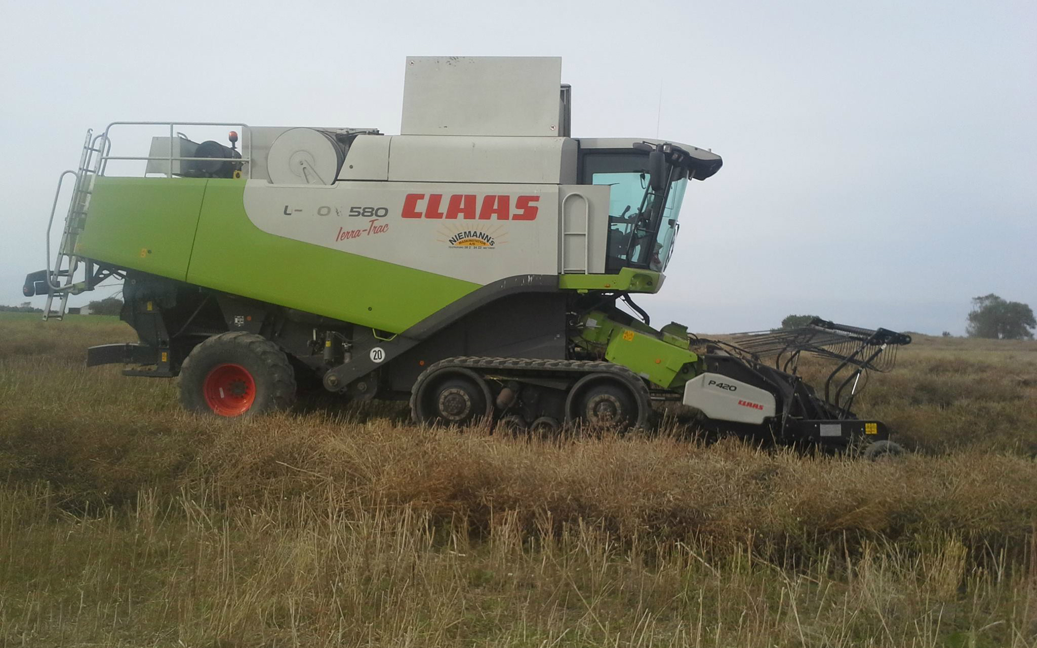 Vi tilbyder kørsel med 14 fod pickupbord (rake-up) til høst af skårlagte afgrøder som græsfrø, kløver og raps. Vi kører med en Lexion 580 Terra Trac 4WD.