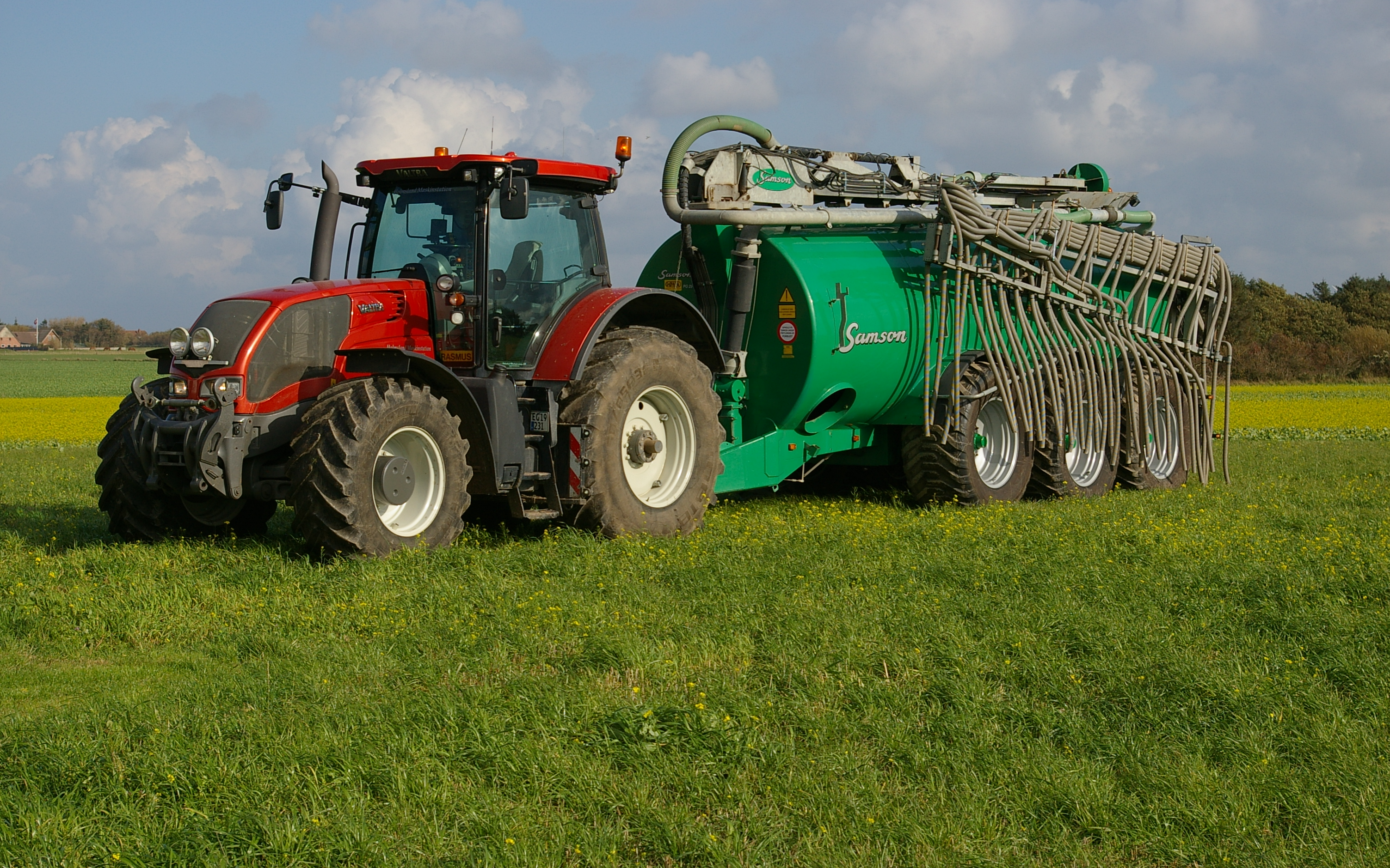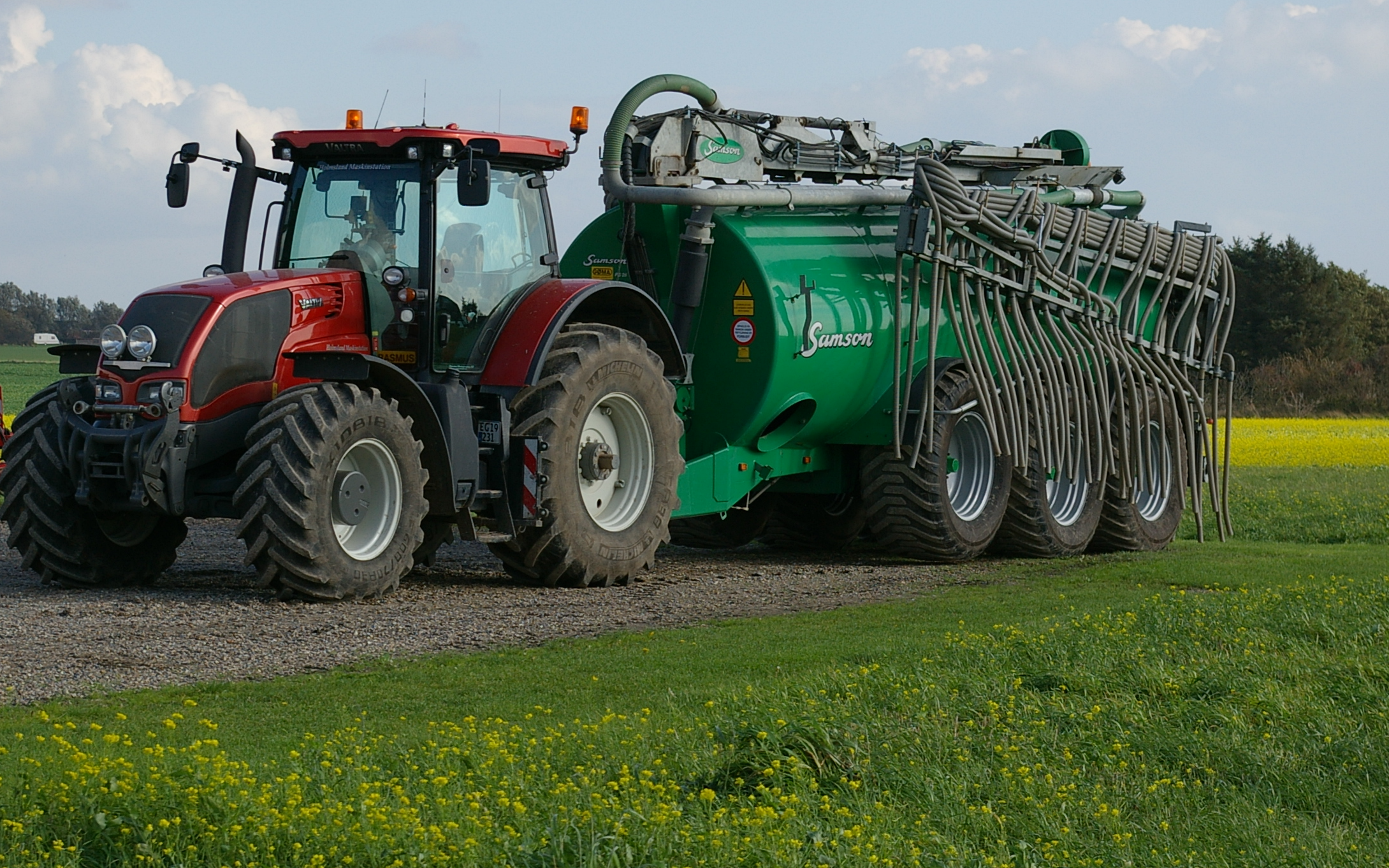 Vi tilbyder gyllekørsel med 25 tons Samson gyllevogn med kran, vi kan udlæggegylle med 24 meter slangebom, og nedfælde gylle med 8 meter Sortjordsnedfælder.