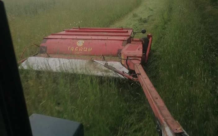 skårlægning med taarup 307 med krimper så man for en god ned tørring af græsset til hø eller wrap