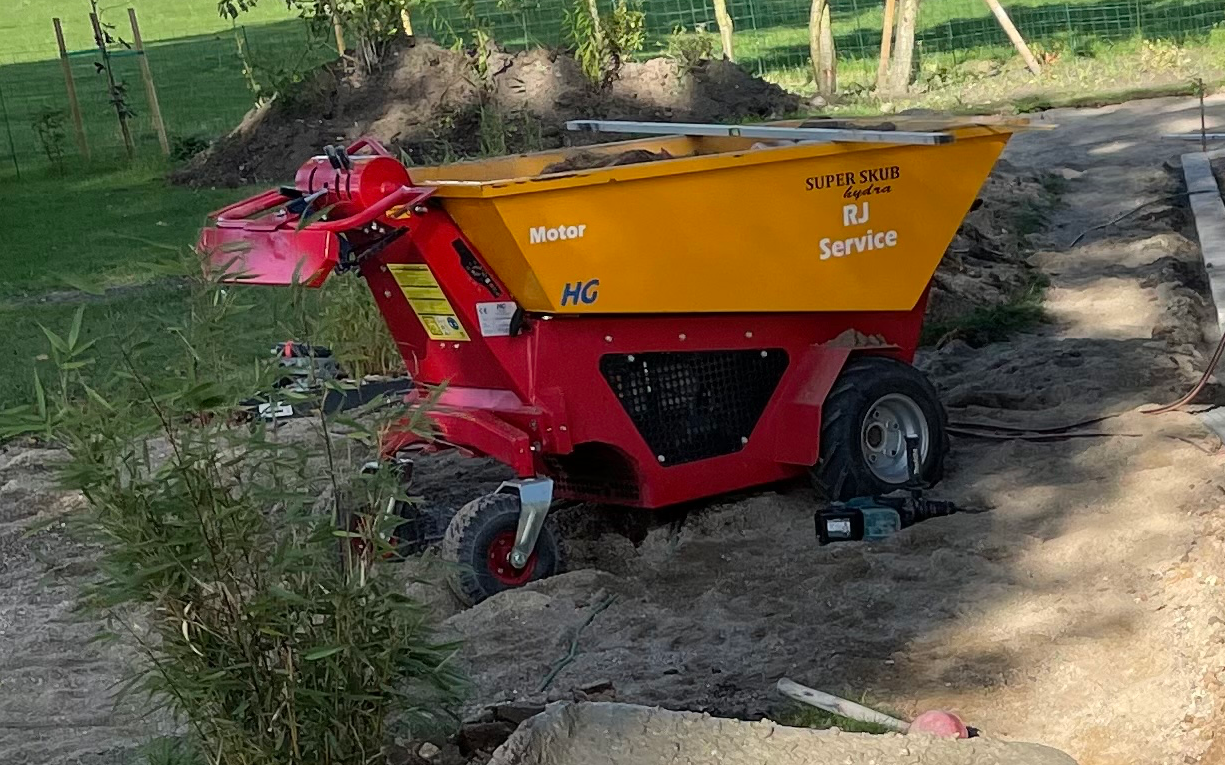 Med traktordæk så den er mere terrængående. Må laste 700kg Måler 85 cm i bredden Nem at køre Kan køre sammen med minigraver (1ton)