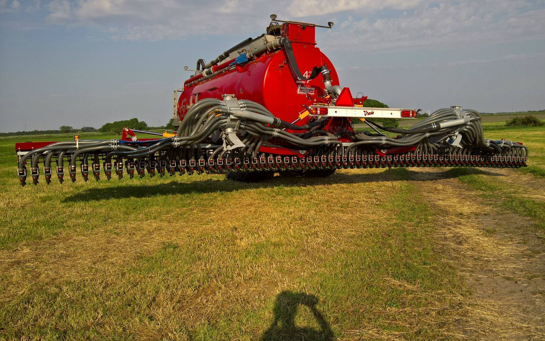 Græsnedfældning med 35 m3 vogn, som er monteret med samme størrelse hjul som traktoren. Der er en 10" læssekran, og 8" aflæsser rør, med en kapacitet på 17,5 m3 i minuttet.