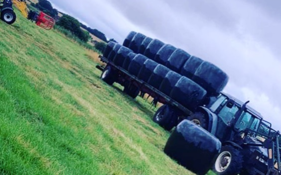 presning af rundballer og minibignew holland 4860