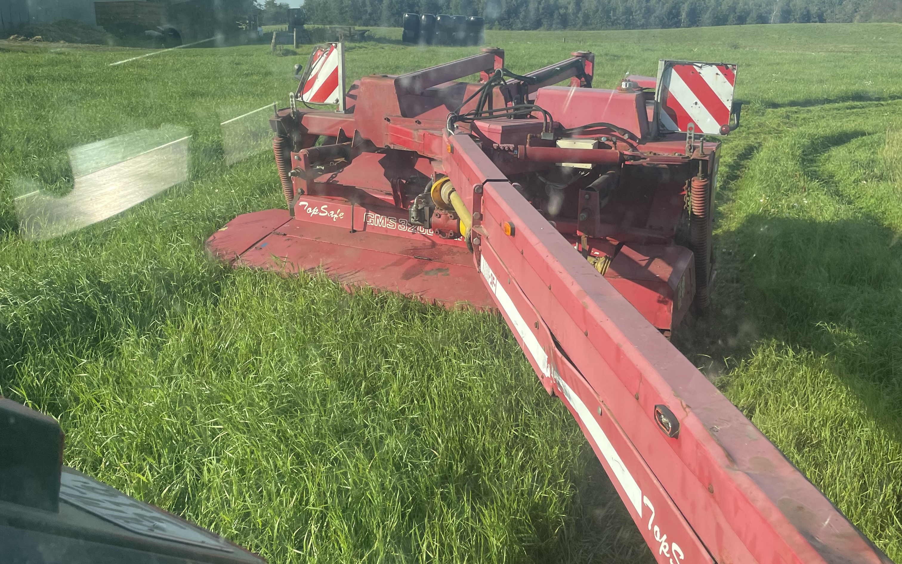Skårlægning med bugseret JF, 3,2 meter arbejdsbredde. Den er med crimper og mulighed for at få det båndet.