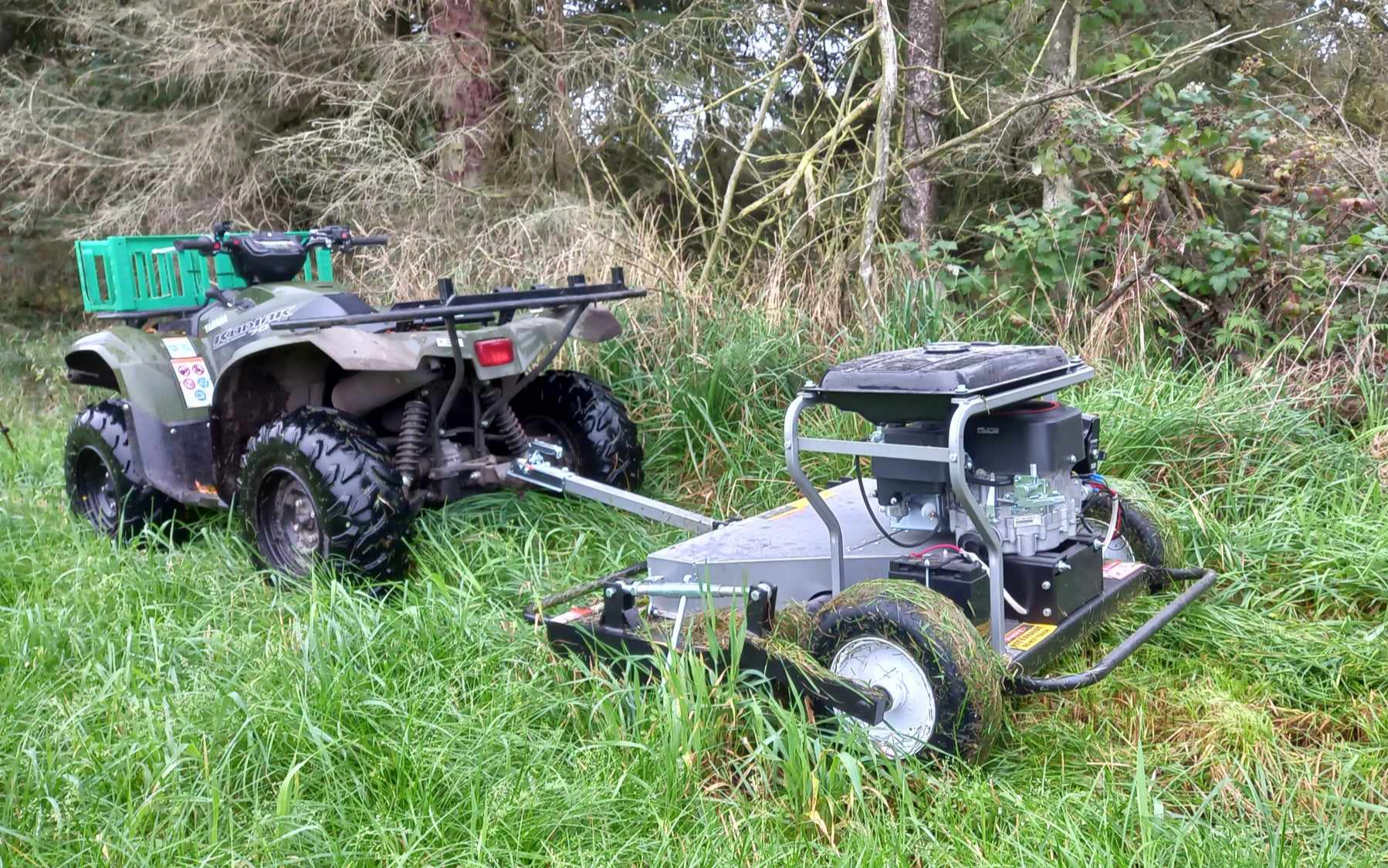 Stærk 4x4 ATV, der kan komme rundt med brakpudser, hvor traktoren ikke kan. Det kunne eks. være: - pudse kanter til forberedelse af hegnsopsætning - slå græsset på engen, hvor der er for blødt til tunge maskiner (og undgå træk i ha støtte) - slå stier
