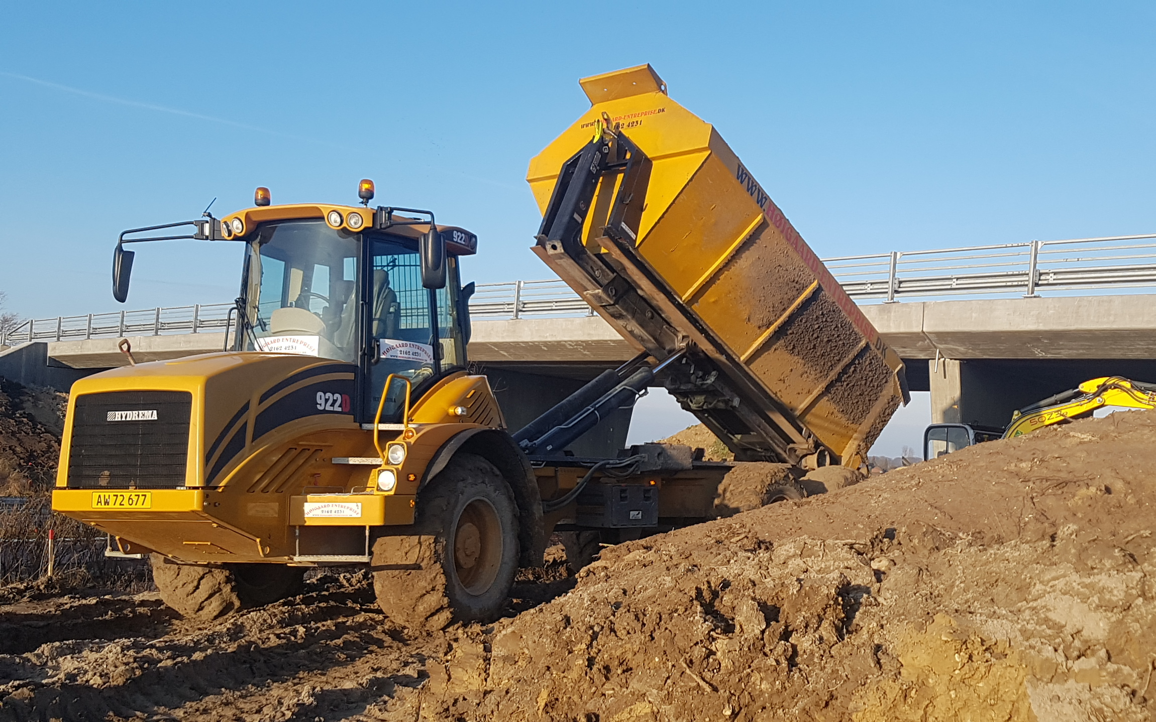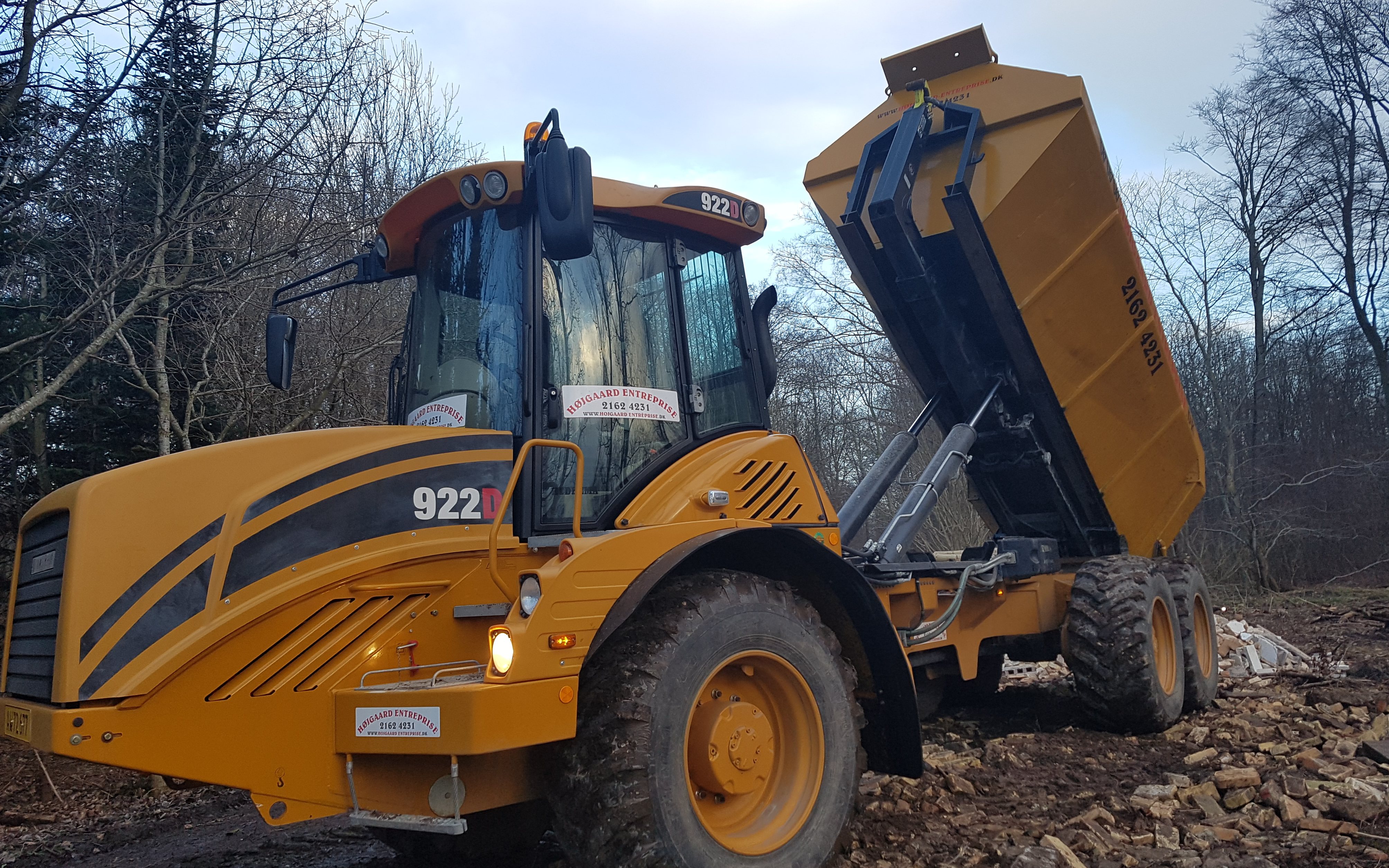 Vi tilbyder kørsel med dumpervogn. Vognen kan kobles til vores Hydrema 922. Vi kan handtere alle slags fast materiale og vores Hydrema gør det muligt at køre i stort set alle terren. Hydremaen er ligeledes indregistreret, og må derfor køre på veje.