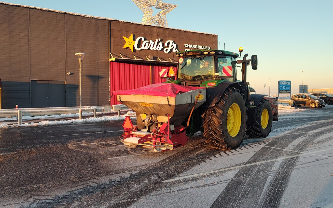 Saltspredning / saltstrøning med Bredal saltspreder med meget nøjagtig tildeling. Vi har også en bil monteret med saltspreder som supplement i spidsbelastninger.