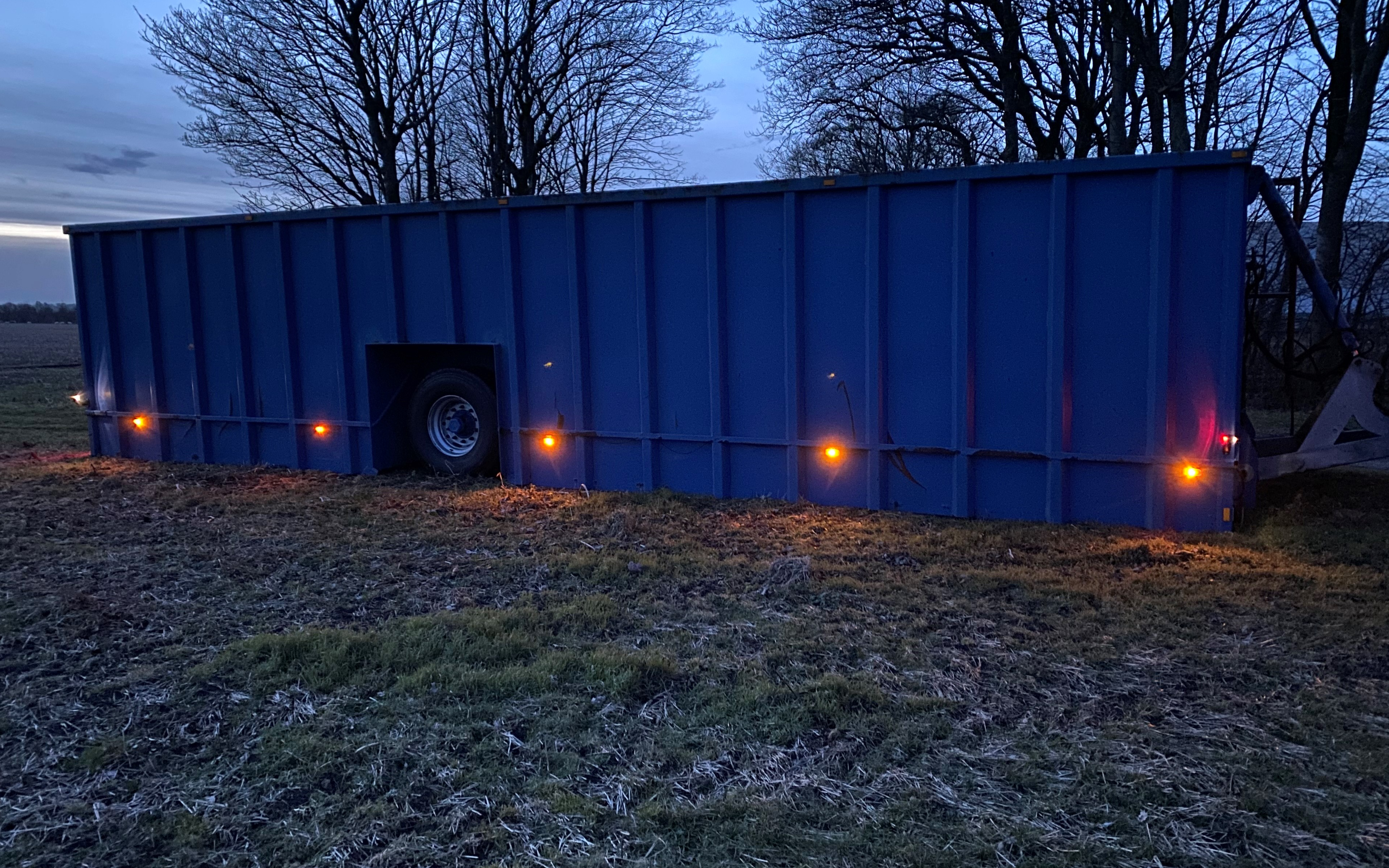 Buffertanken er kun 2,6 meter høj, når den står på jorden. Så det er nemt for gyllevognen at svinge kranen over i tanken.