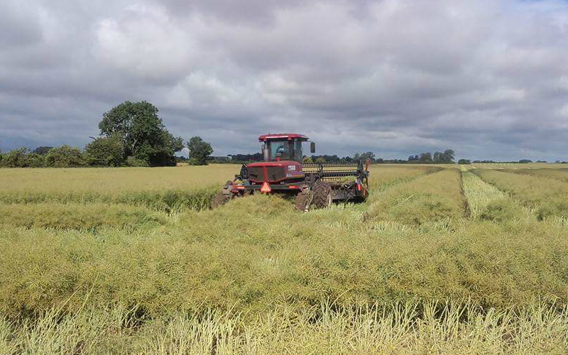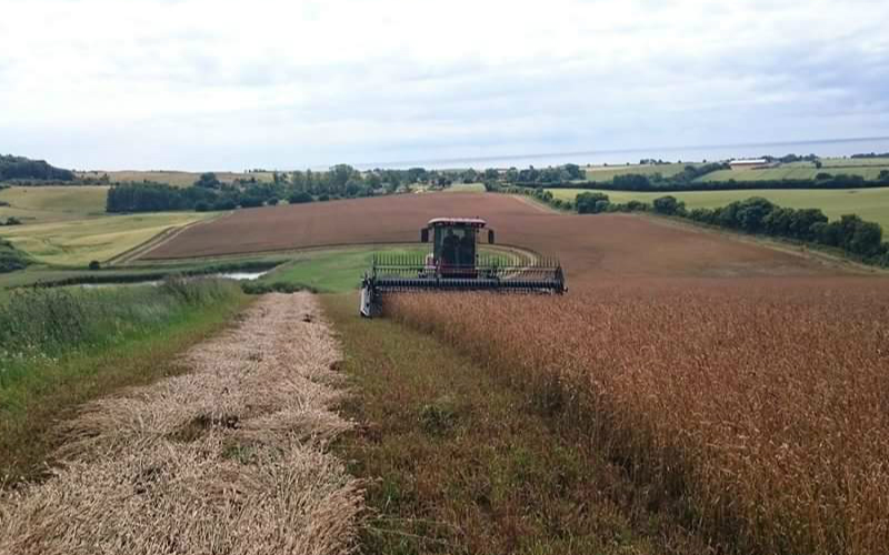 Med vores MacDon 18 fods med sejl kan vi tilbyde skårlægning af alle slags afgrøder. Er kornet meget vådt kan skårlægning hjælpe med at fremskynde tørringsprocessen betydeligt. Vi kører med GPS.
