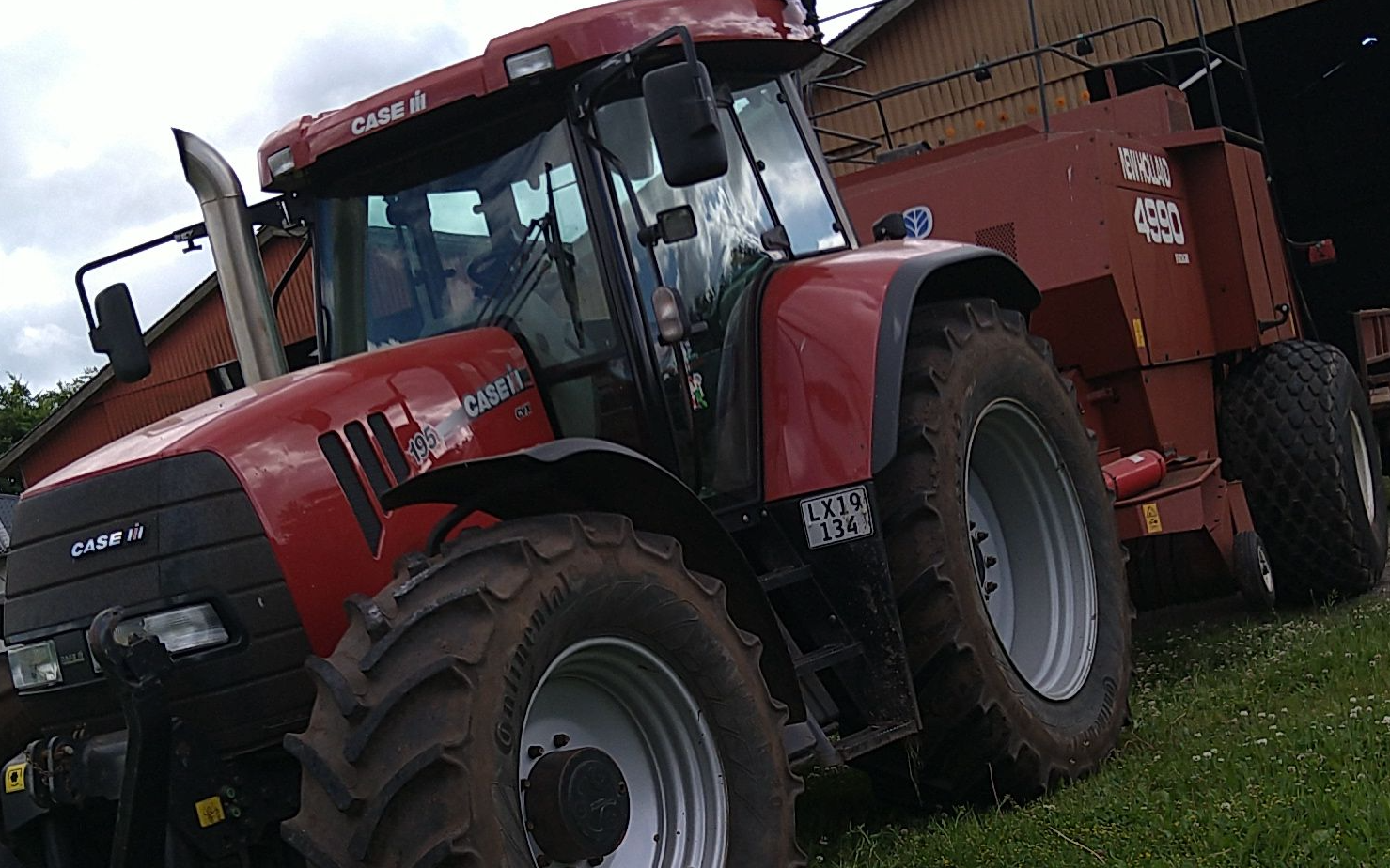 Presning af bigballer med samlevogn med New Holland 4990 med Case ih cvx 195