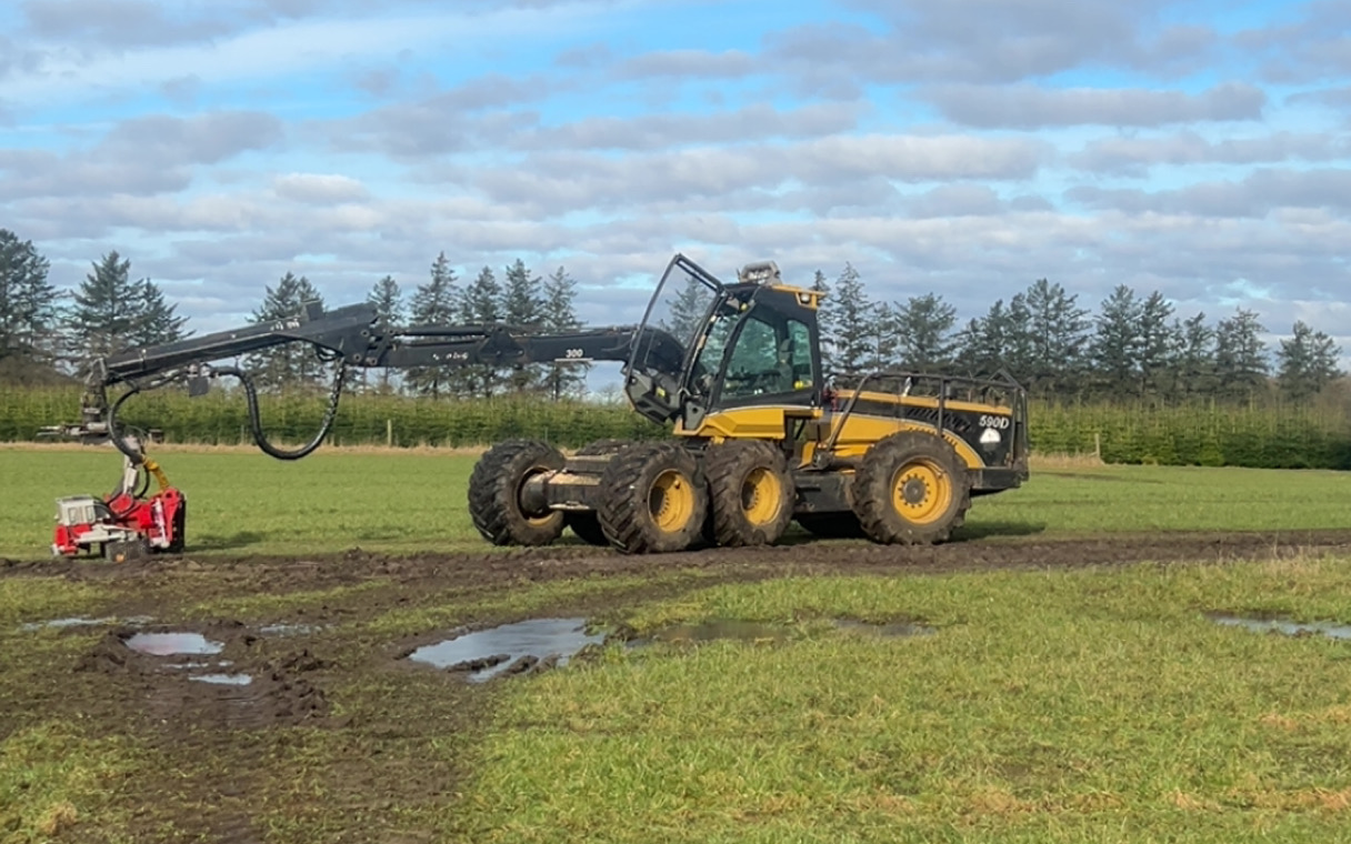 Sporlægning udtynding/fældebunkelægningMecalac 15 MC