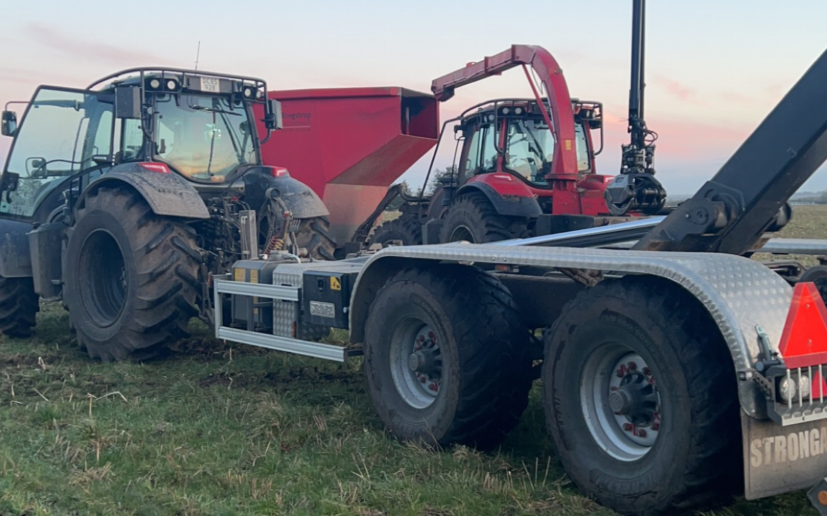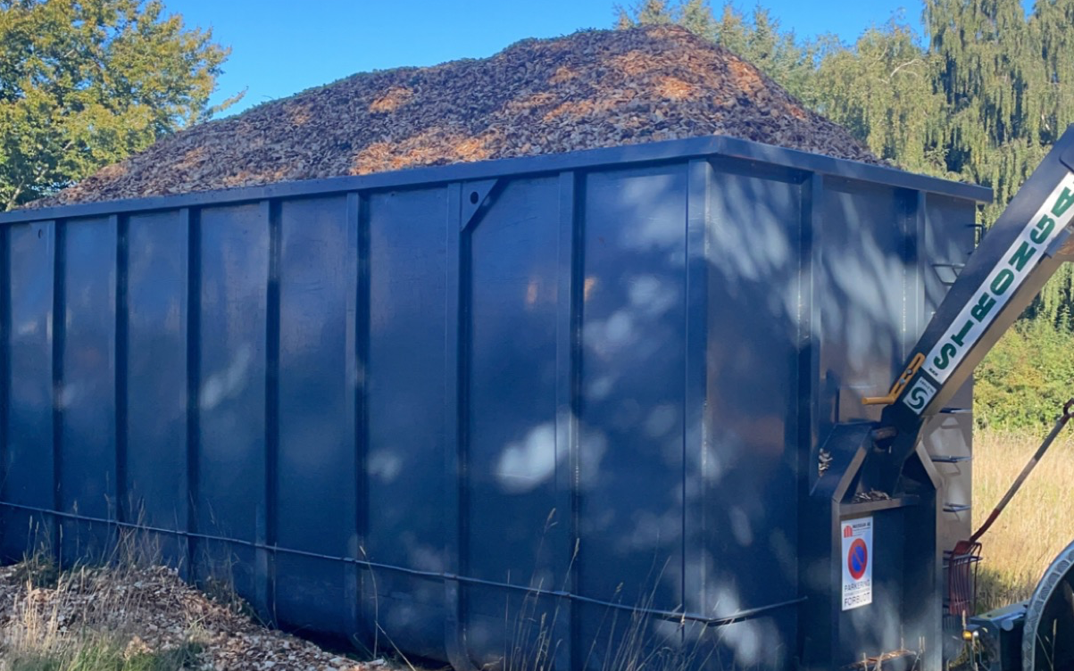 Vi bruger den selv til transport af vores flis i nærområdet og til at trække kasser ud af skoven til lastbilerne Vi har 2 stk 41 rm fliskasser Vognen er med egen hydraulik hvilket gør den er utrolig stærk