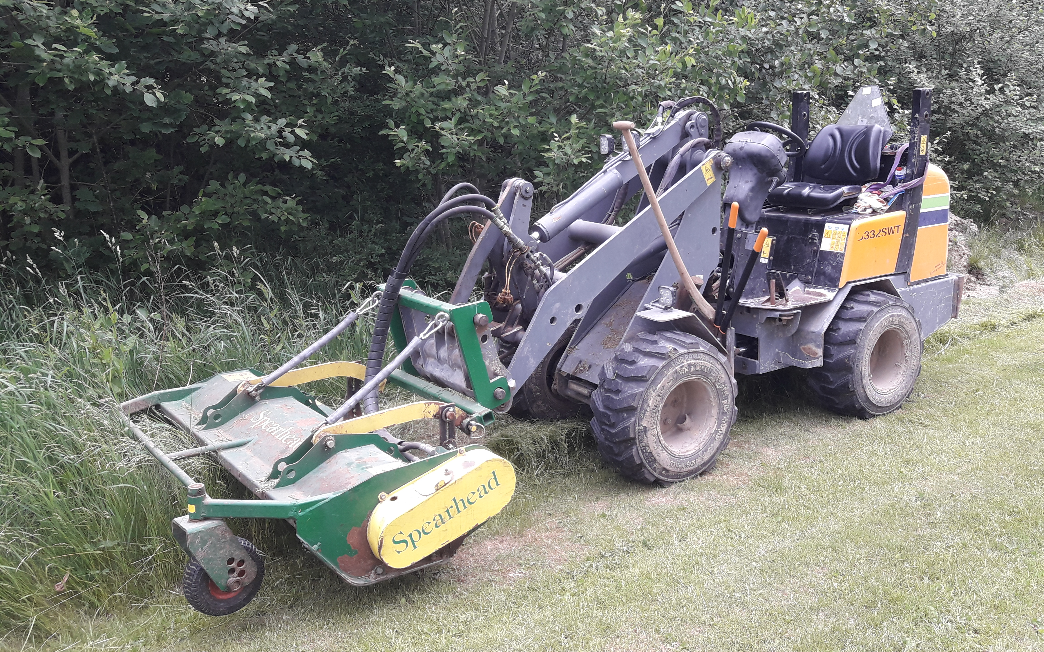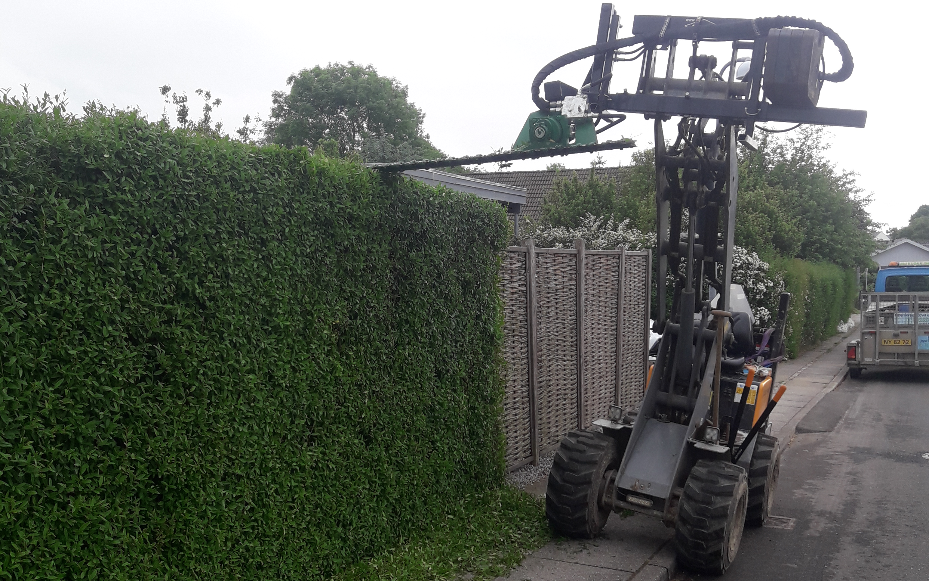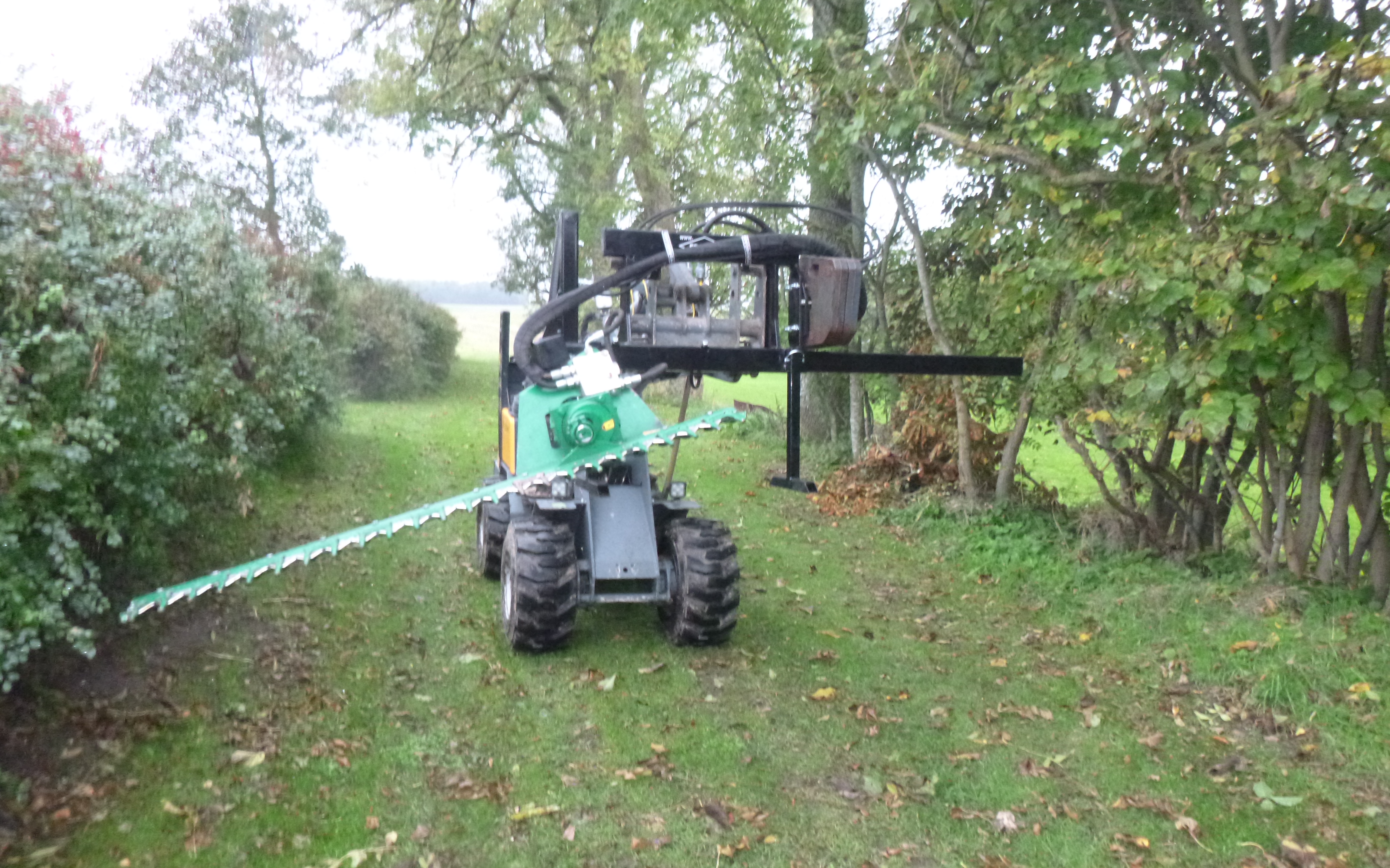 Vi køre med en GreenTec/Spearhead klipper, den tager 1,8m af gangen, Rækkevidde lodret m. hækklipper 3,90 m og Rækkevidde vandret 2,30 m, Grentykkelse 40 mm - 60 mm. vi udføre også meget andet, se mere på jsjkloak.dk