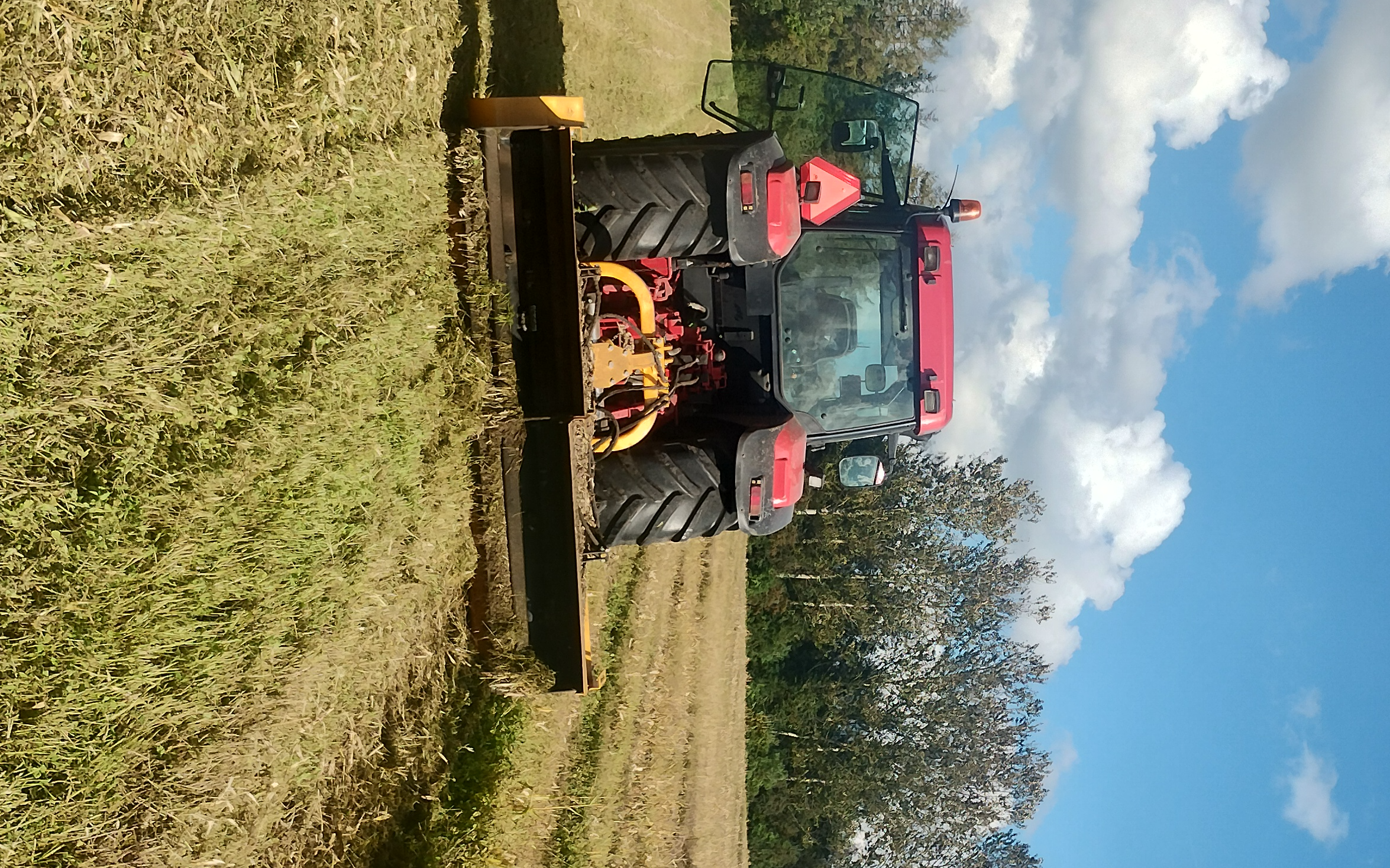 klipperen har en arbejdes brede på 3 meter. Den kan forskyde til siden, så det er nemmere at komme helt ind til høje træer. Det er med hammer slager, der gør at hvis der skulle være et buske eller et lille træ kan det også klippe. Hvis man ønsker at materialet skal være i mindre skytter kan jeg lukke i bagende så materiale bliver længere tid inde i maskinen