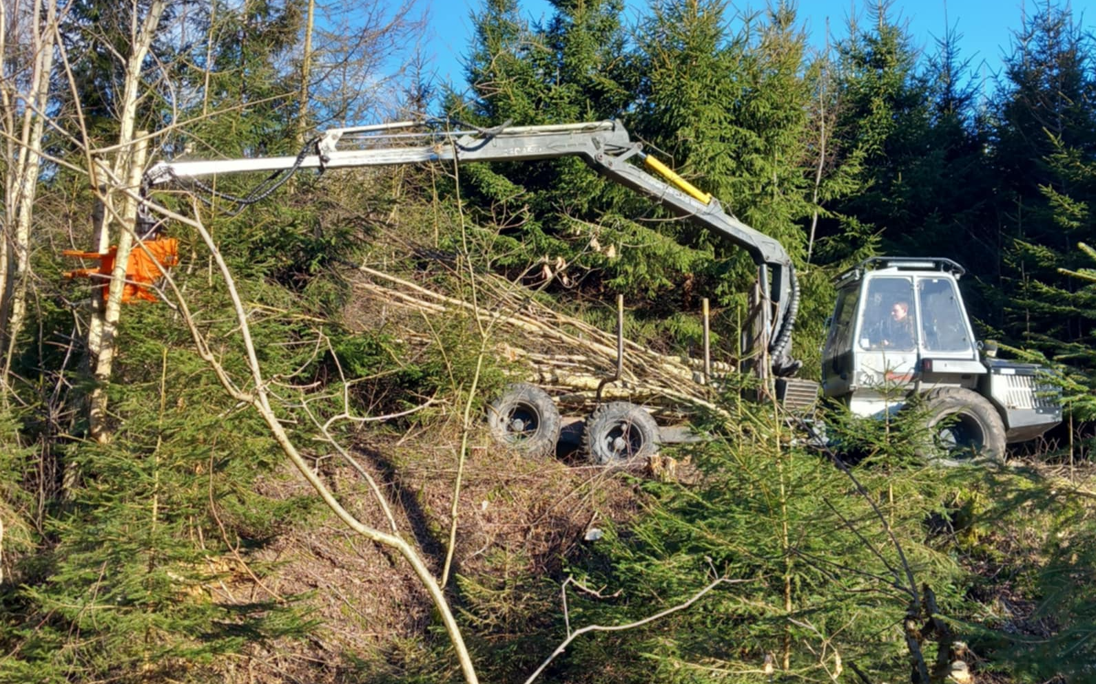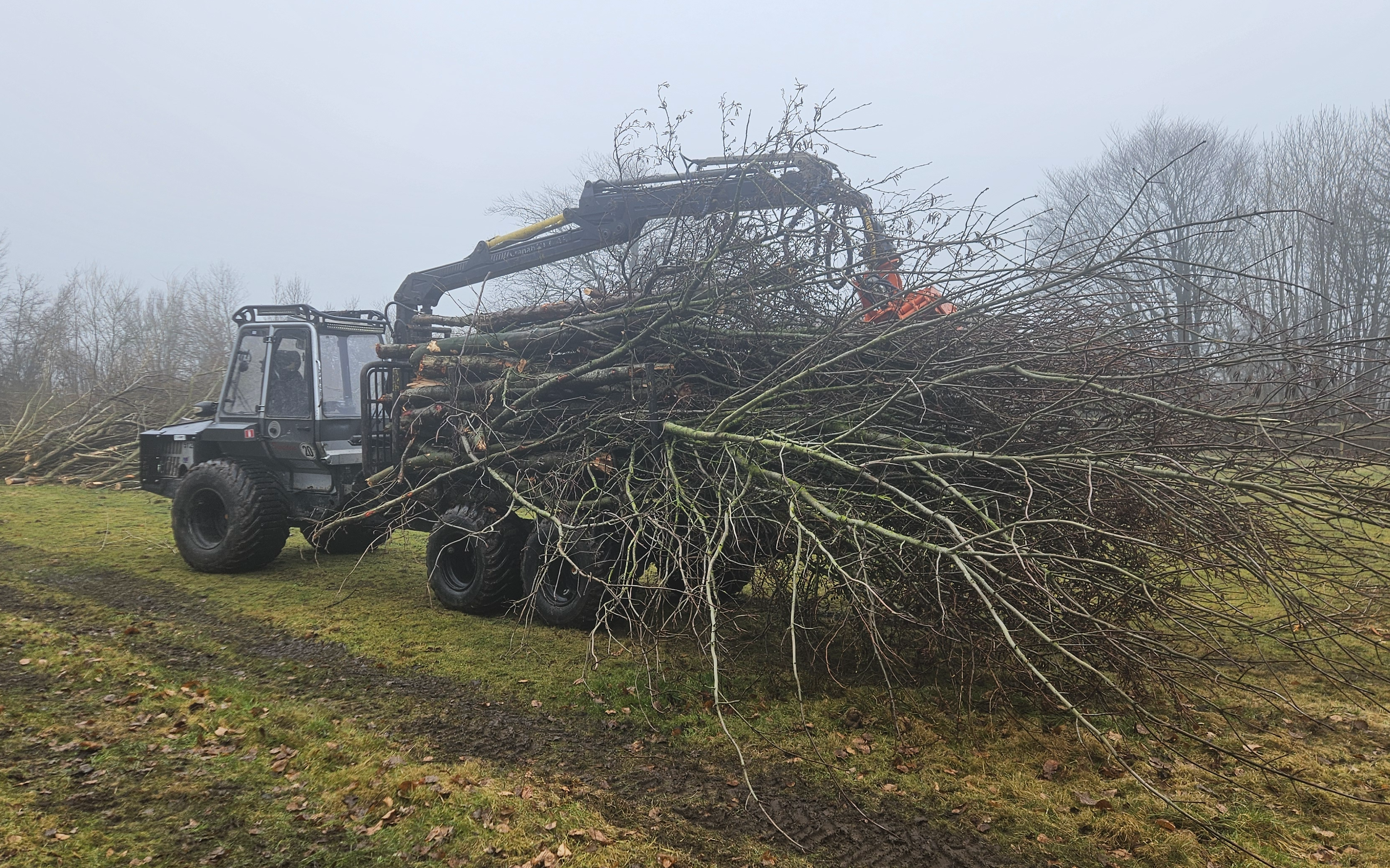 Malwa 560f monteret med akkumulerende biojack klippe hoved. kan klippe op til 20 cm. god til udtynding, udrensning samt oprydning i læhegn.