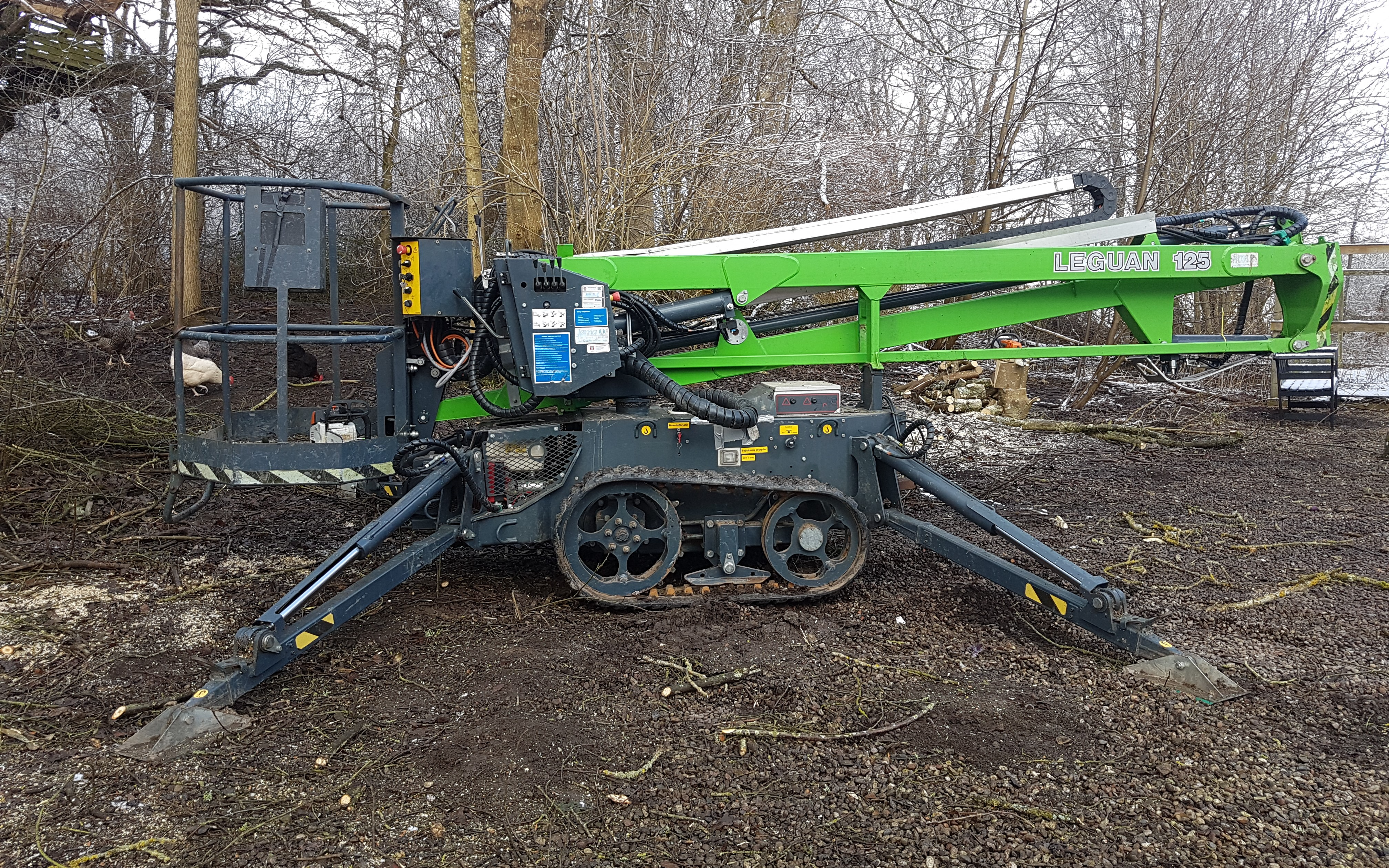 Selvkørende lift. Bredde kun 1,20 meter. Maks. last: 200 kg. Maks. løftehøjde: 10,5 meter. Egenvægt: 1800 kg. Der kan lejes kompressor til som giver mulighed for trykluft i kurven.