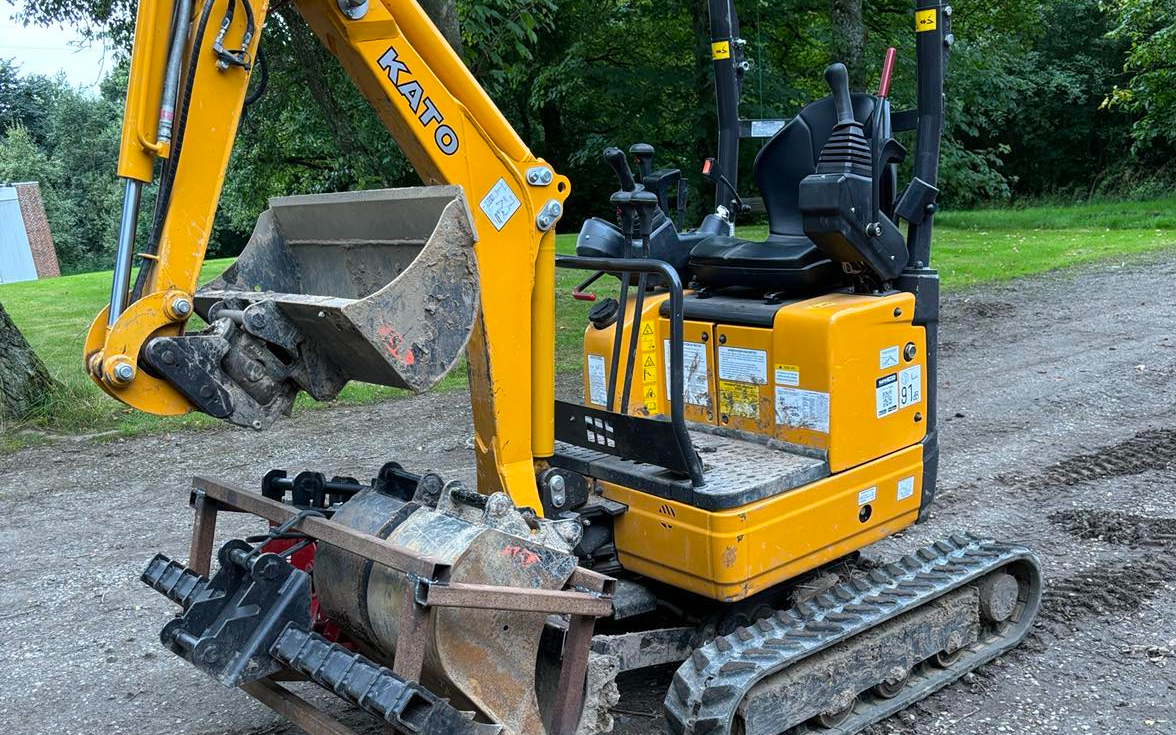 Kan køres ind på 80cm bredde; så den kan komme ind smalle steder. Har følgende udstyr til den: - Tilt - Planer-skovl - 20 og 25 cm. graveskovl - 35 cm. ler-skovl - Soter-grab - Rive - 150 cm planer-bjælke - Betonhammer