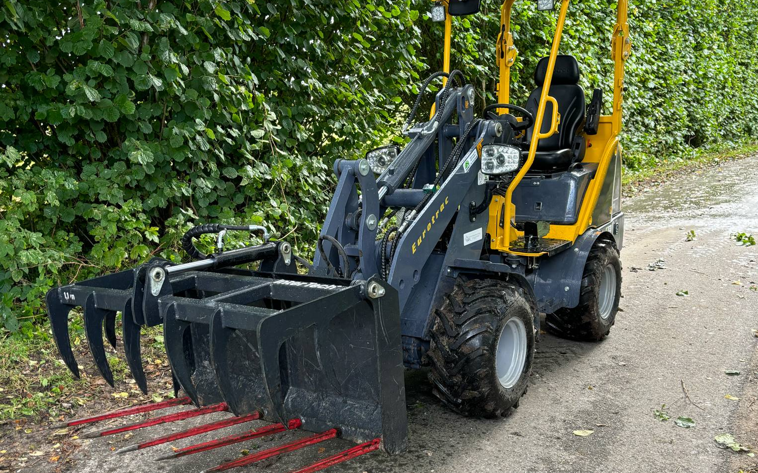 Løfter 1000kg og er 110cm bred. Af udstyr kan nævnes - Skovl - Pallegafler - Overfaldsklo -Hækkeklipper - Vejhøvl - Kost -.Rive