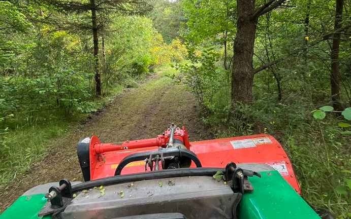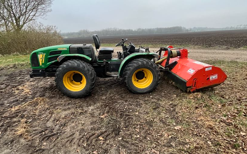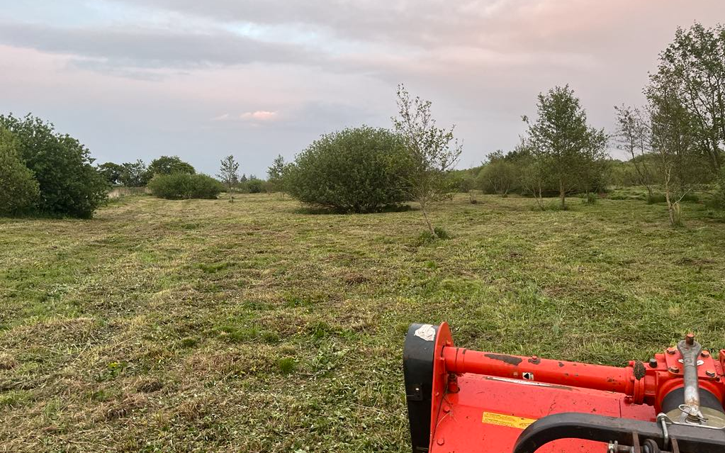 Vi kan slå, bløde områder, skov eller lignende stier, brakmarker eller tilvokset områder. Vi kan slå på mindre hældninger. Arbejdsbrede på slagleklipperen er 170 cm. samlet bredde er 180 cm bred. Traktoren er med brede hjule og en totalvægt på 1900 - 2000 kg. Kontakt mig gerne på tlf. 23 82 51 58