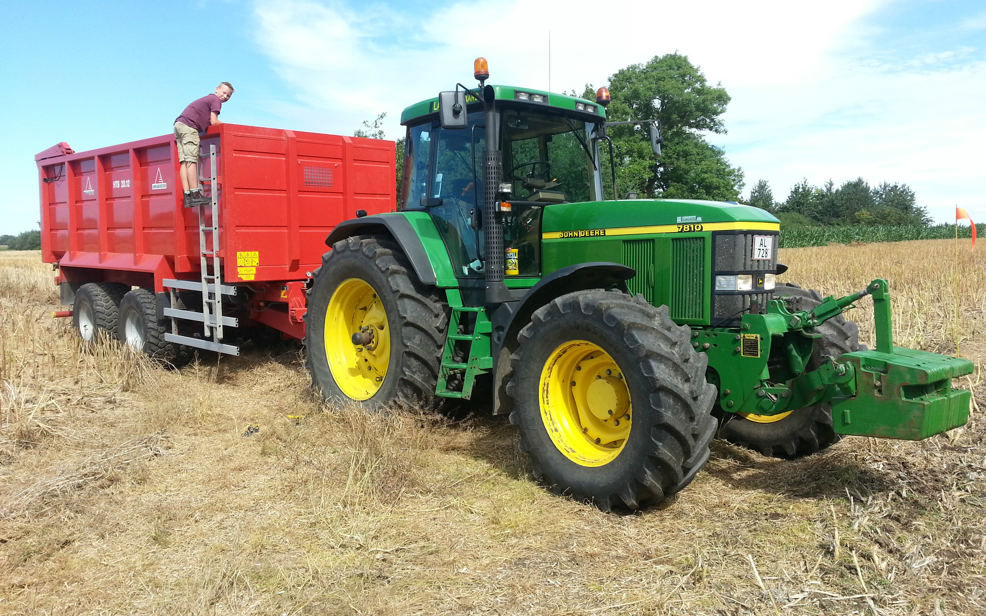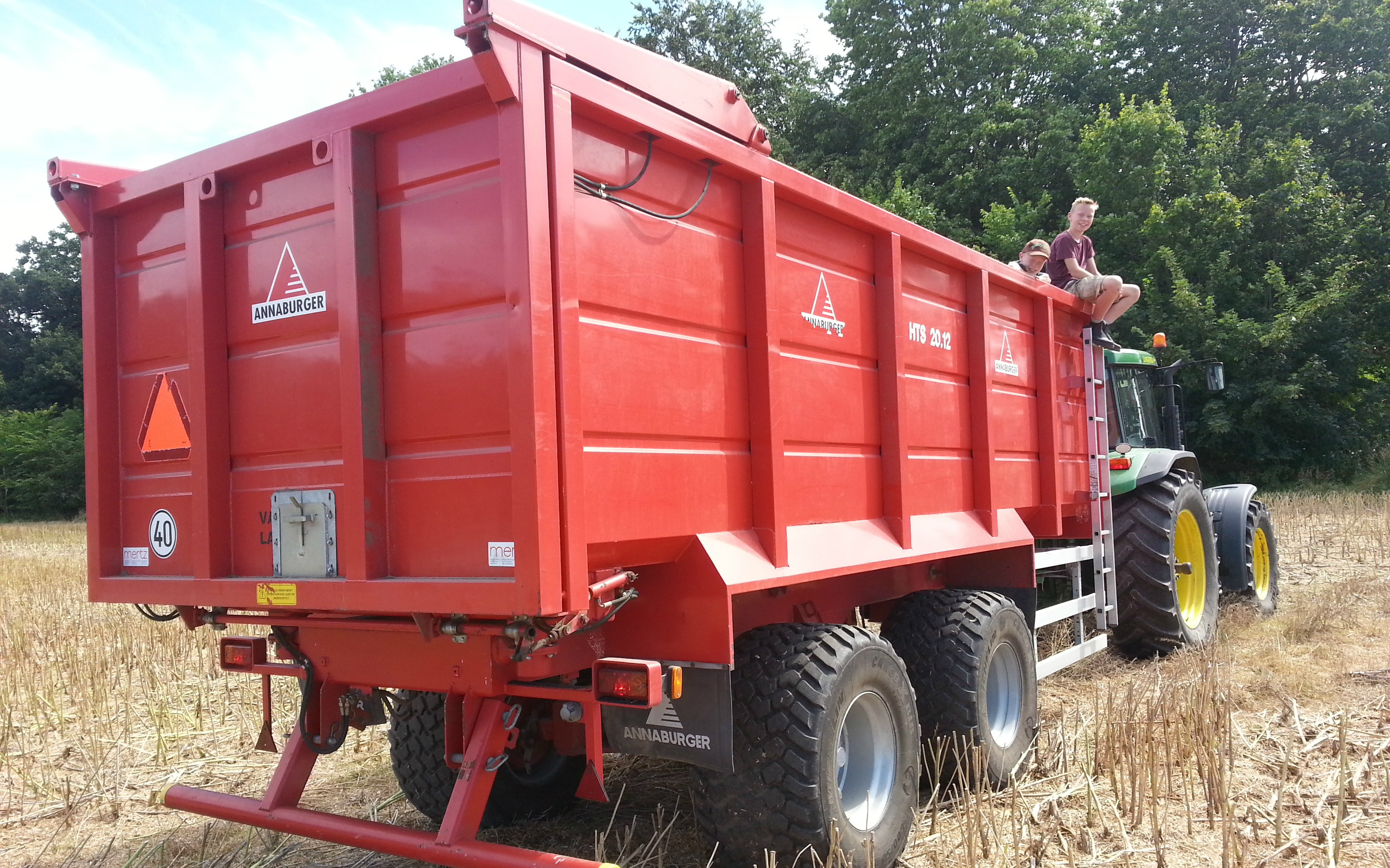 Har du brug for en ekstra kornvogn pga. øget mejetærskerkapacitet, længere afstande eller blot ekstra fleksibilitet så er der mulighed for leje på timebasis med traktor (John Deere 7810) og erfaren fører (45 år og selvstændig). Vognen har fransk bagsmæk + kornskod, drejbar bagaksel og Michelin 600/50 Cargo-X-bib. Vogen kan tage ca. 18 tons i hvede.