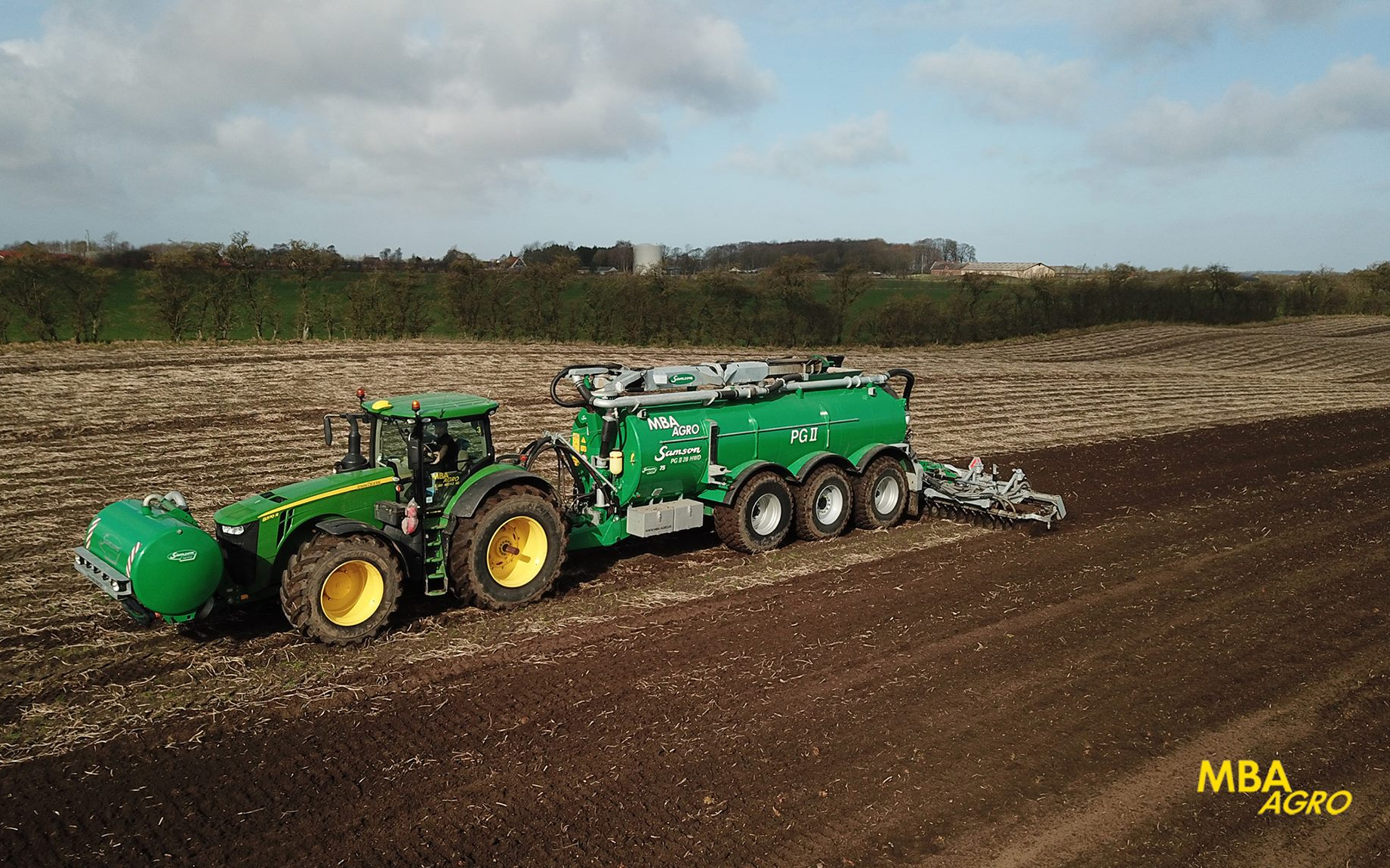Vi nedfælder gylle med én Samson PGII 28 HDW gyllevogn. Discnedfælderens styrke ligger i en jævn nedfældning og bearbejdning jorden uanset mængden af afgrøderester på marken.