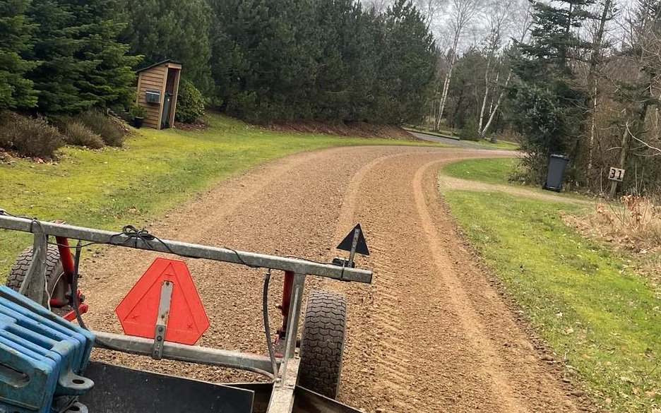 Vi slæber med 3 skærs Vejhøvl med justerbar baghjul og sideforskyd