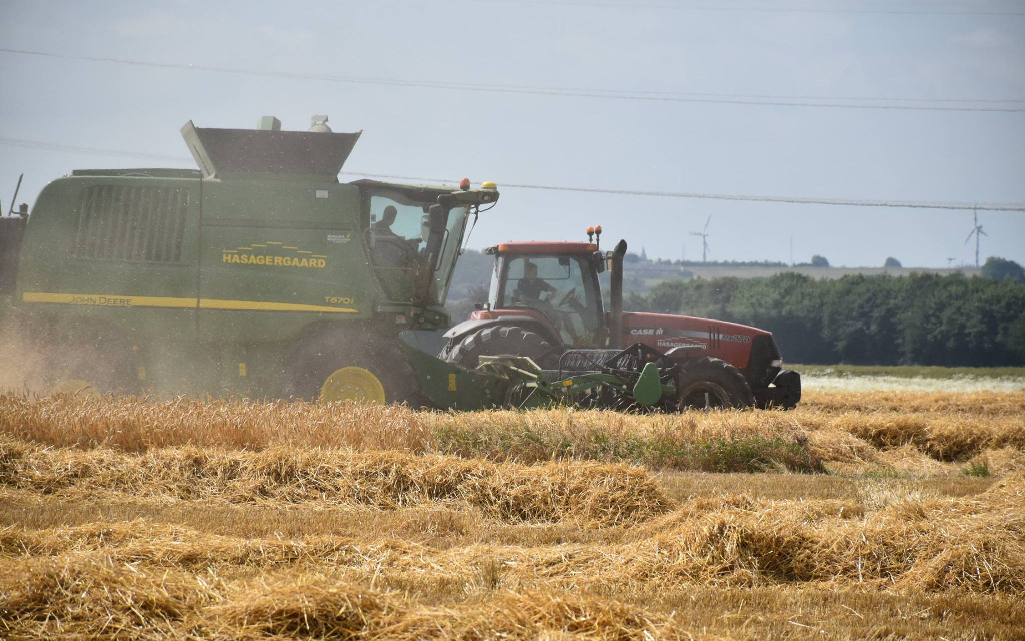 Begge mejetærskere er rotormaskiner med 35 fods skærebord. Begge har GPS-styring og sideknive.