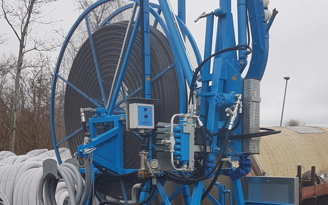 Minimum 500 meter lang spuleslange Vores Hollanske drænspuler har en minimum 500 meter lang spuleslange. Maskinen kører med lavere tryk for ikke, at beskadige ældre rør heriblandt eksempelvis teglrør og har speciel spuledyse hertil. Vores maskine er derfor ikke kun begrænset til at køre nye dræn, men også til vedligeholdelse og reparationer af dræning.