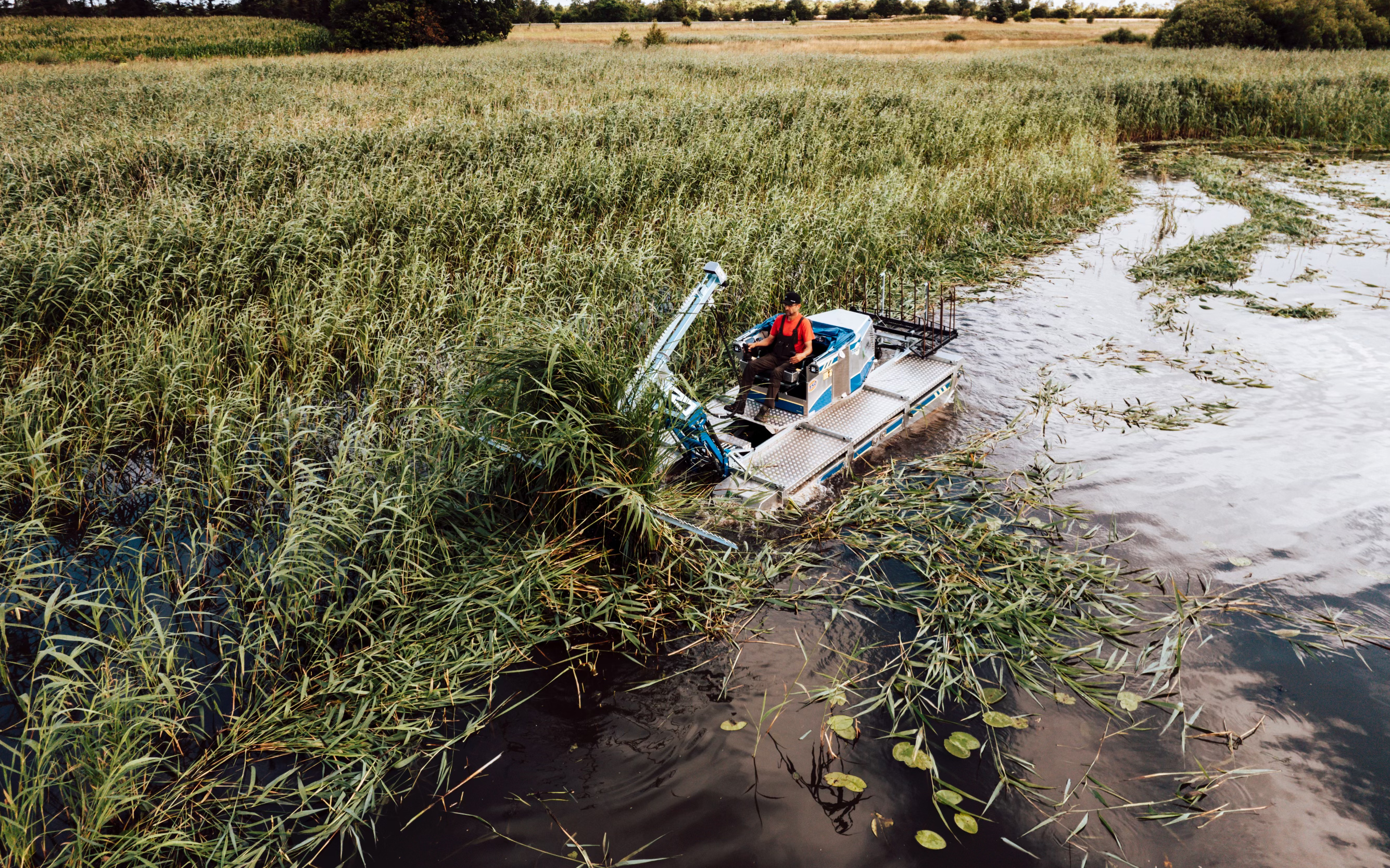Med Vores Truxor T50 Amfibiebåd, kan vi køre/sejle alle steder. Vi klipper og oprenser alle former for Søer, vandhuller, vådområder, Åløb m.m.