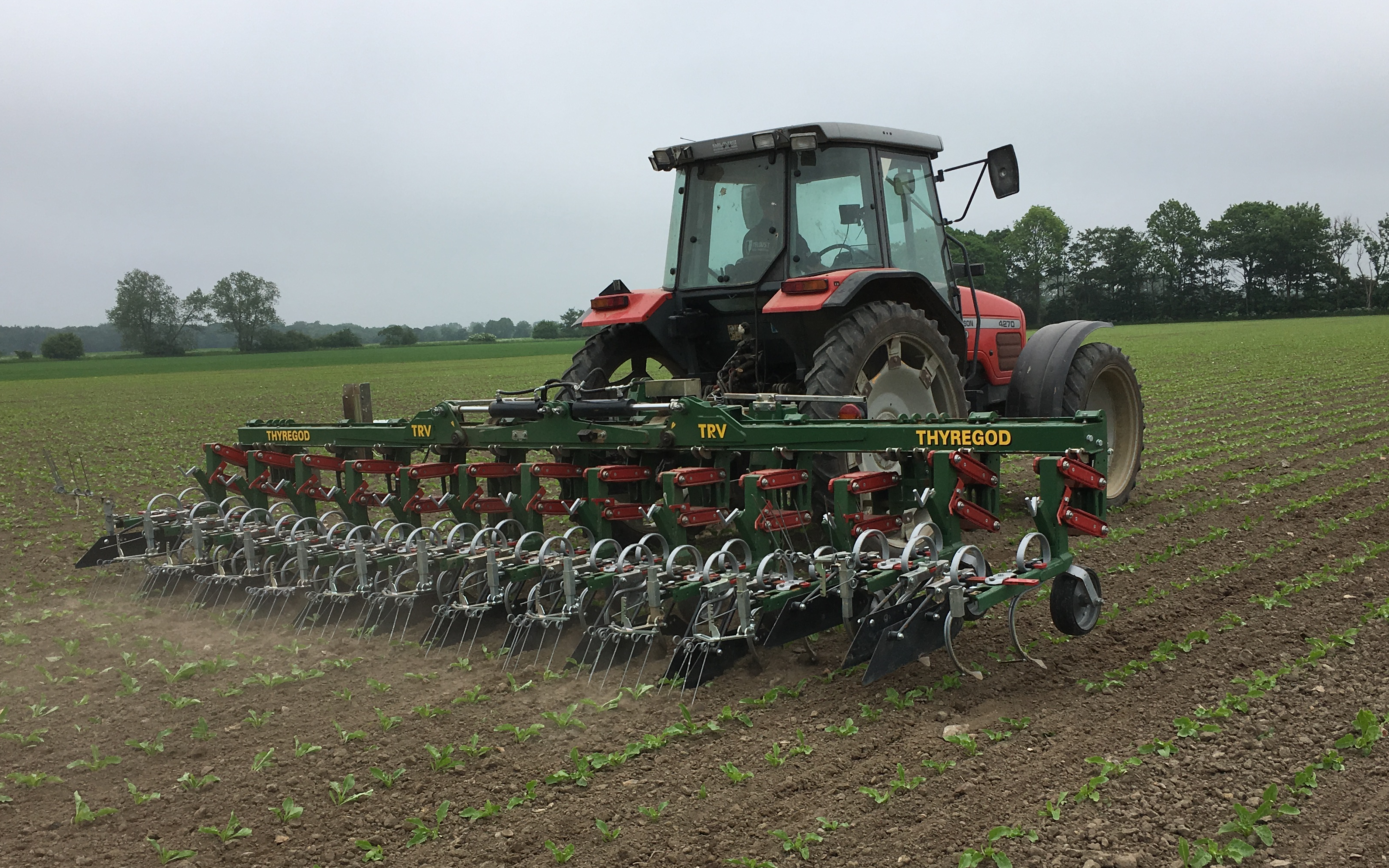 Der tilbydes radrensning af roer, spinat og andre afgrøder sået på 50 cm op til 12 rækker. Der tilbydes også radrensning af majs op til 8 rækker.