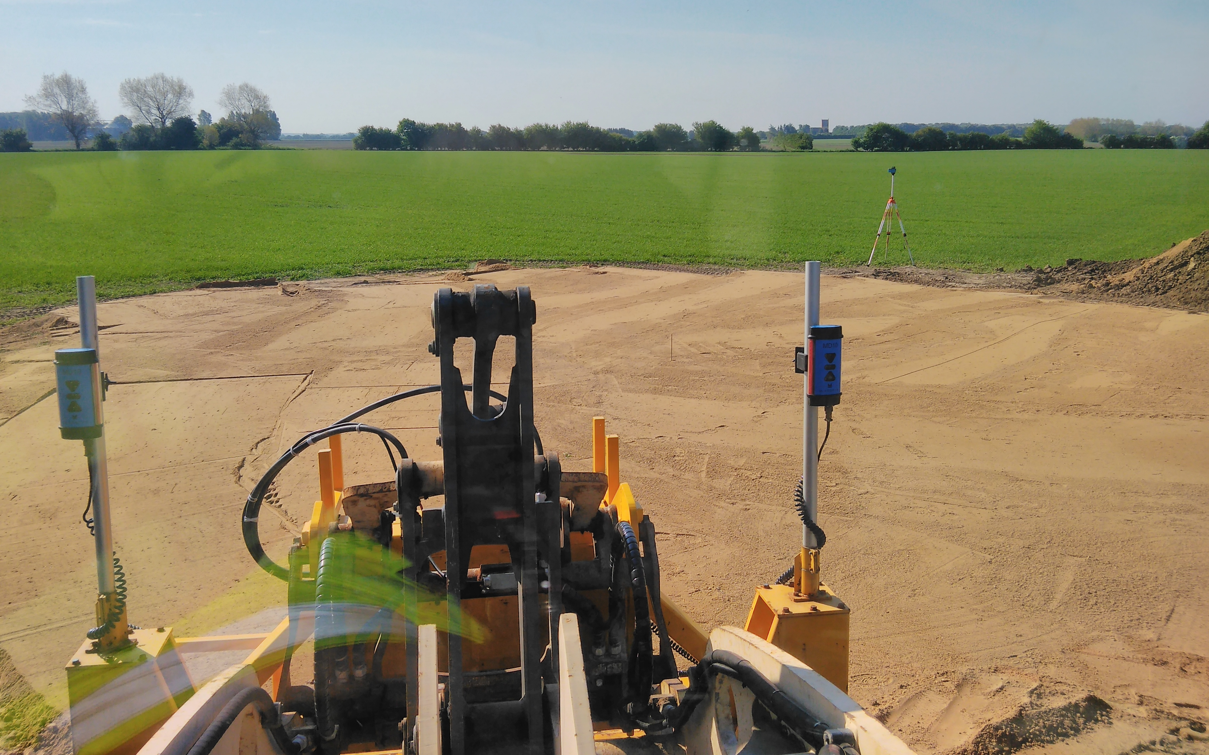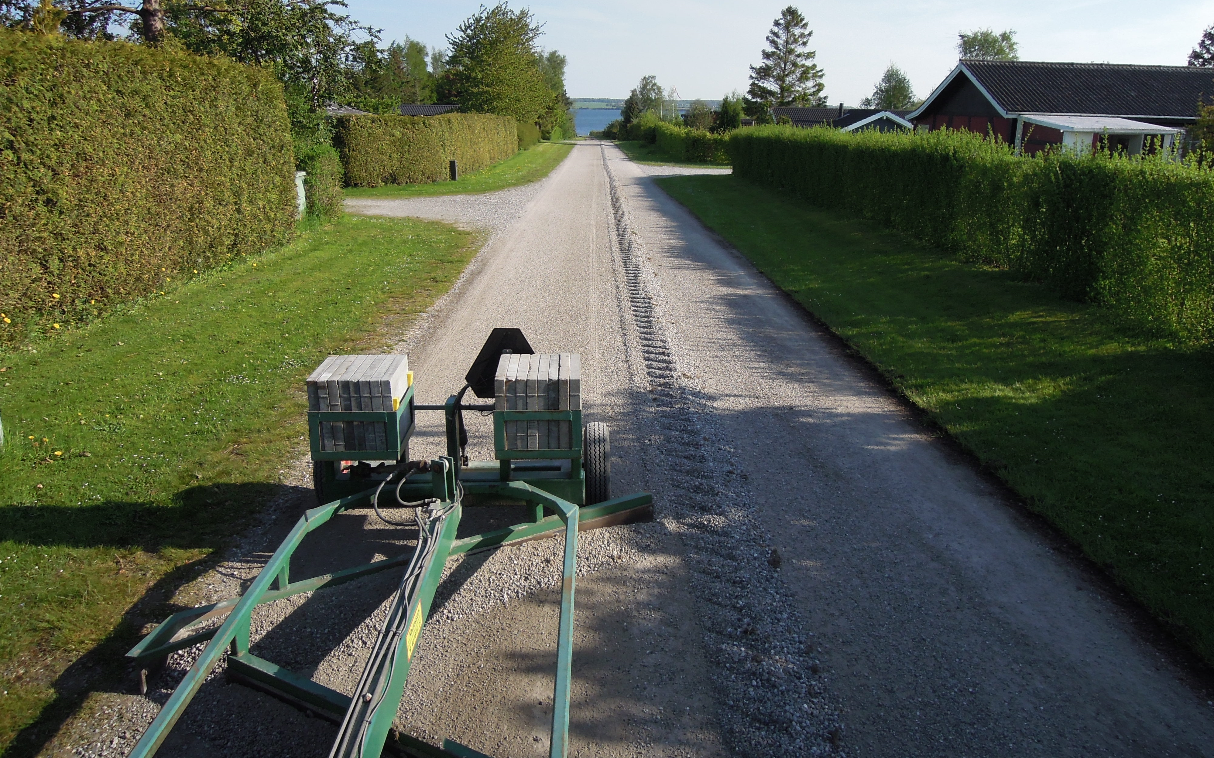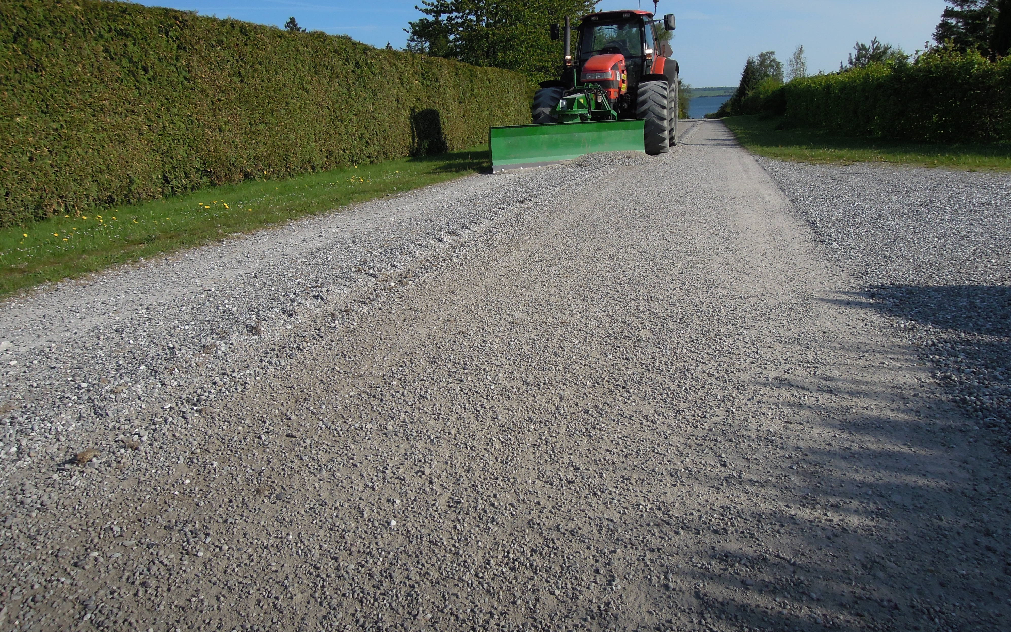 Laserafretter 2D til hurtig og nøjagtige afretning med eller uden fald af pladser, veje, ridebaner, belægninger, byggerier m.v. Vejhøvl til vedligeholdelse af veje, grusveje, stier og skovveje, udlægning af grus til stier og veje.