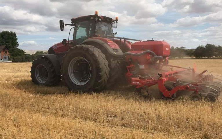 Grubbe såning med disk samt trykruller til dybdejustering af rapsfrø. Der kan tildeles gødning og sneglegift.