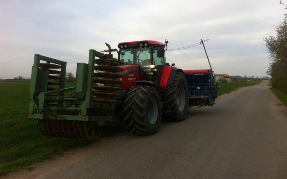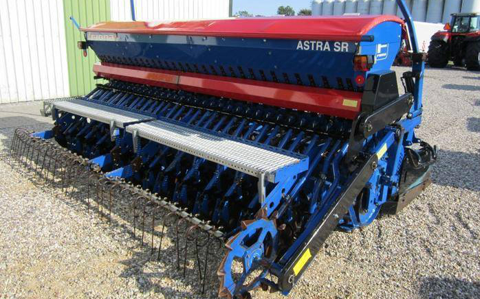 4m Fiona rotorsåmaskine med dobbelt skiveskær og frontpakker.