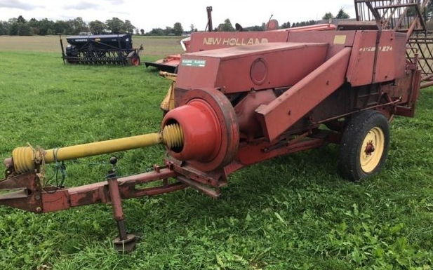 Presning af hø og halm i småballer.