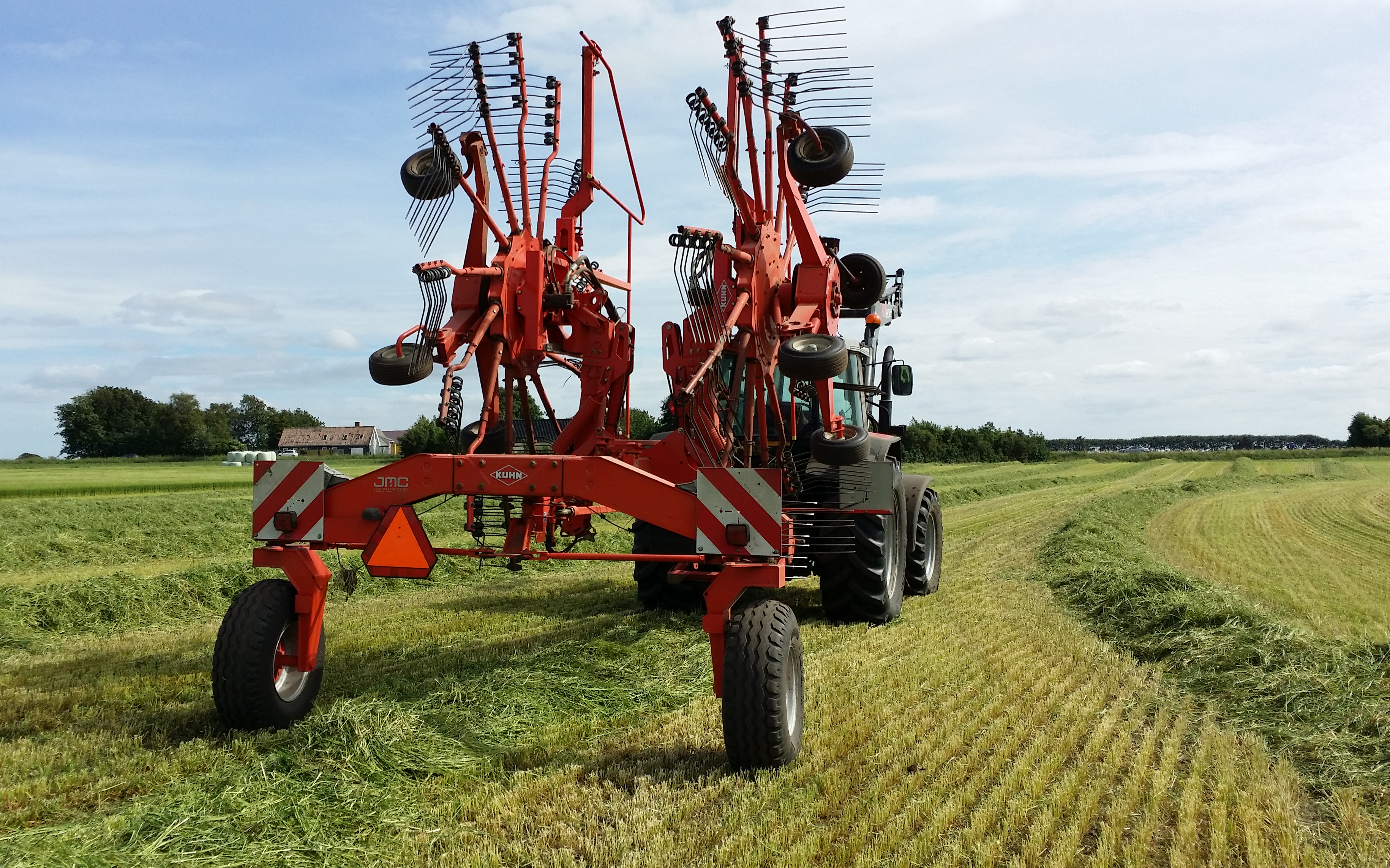 Sammenrivning af græs og halm tilbydes med Kuhn GA 8521, 8,5m storrive.