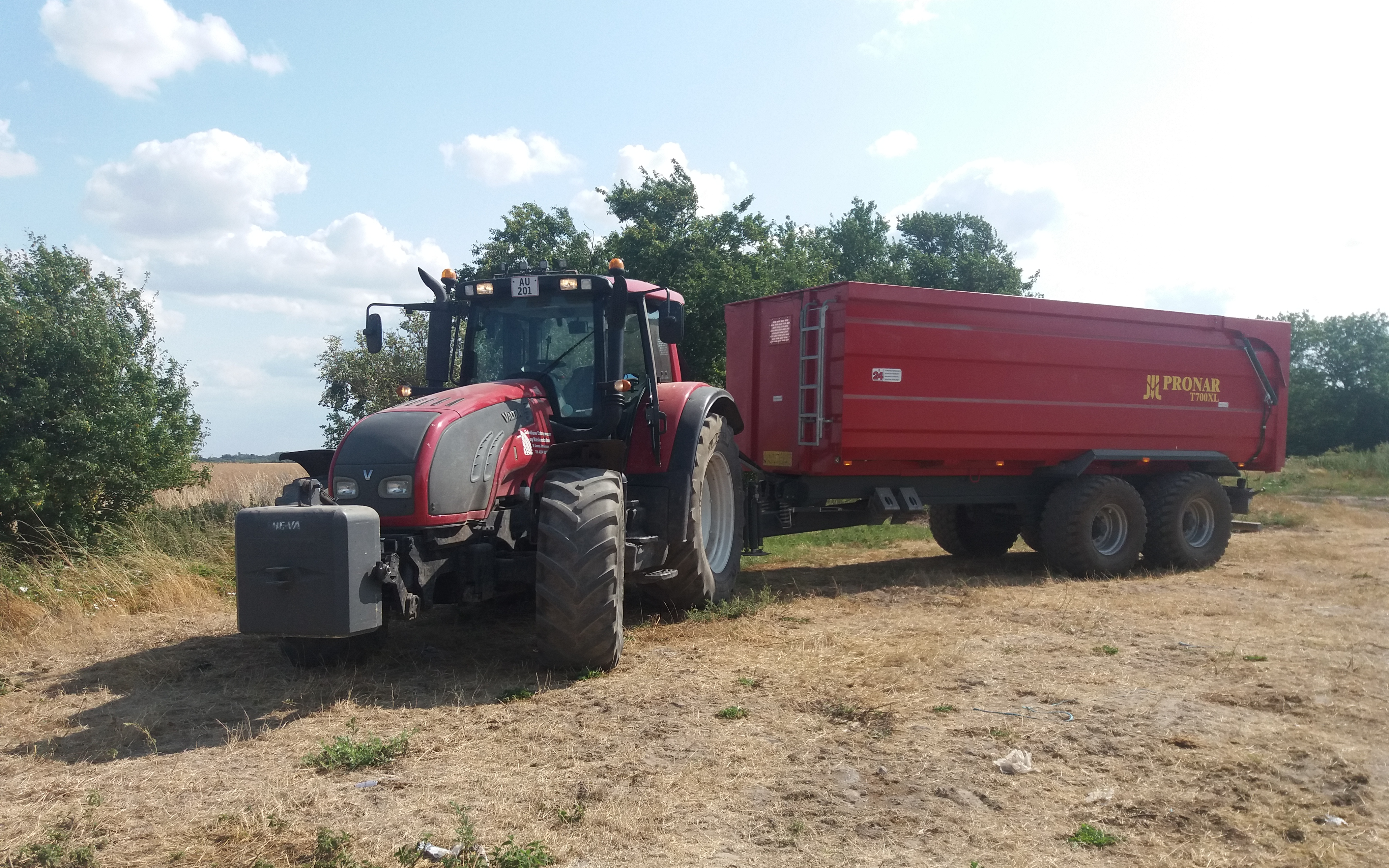 Transport af korn, majs og meget andet tilbydes med vores Valtra T 202 Versu og Pronar T 700 XL 18t