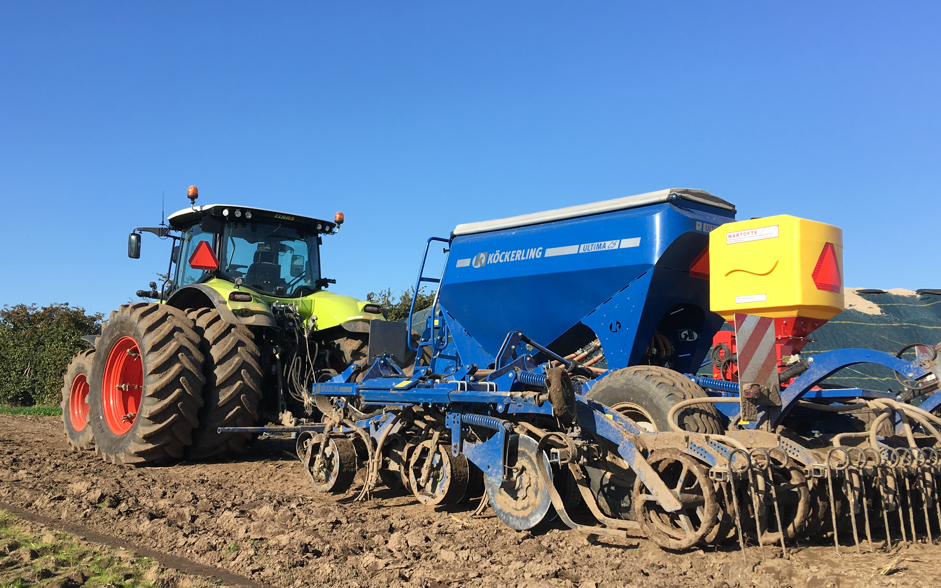 Såning med köckerlinng ultima CS tandsåmaskine. Med dybet hjul på vær enkel tand. Der kan både køres i pløjet Jord og pløjefrit. Meget god til hestebønner forde den med sine tænder altid kan få dem i dybden.