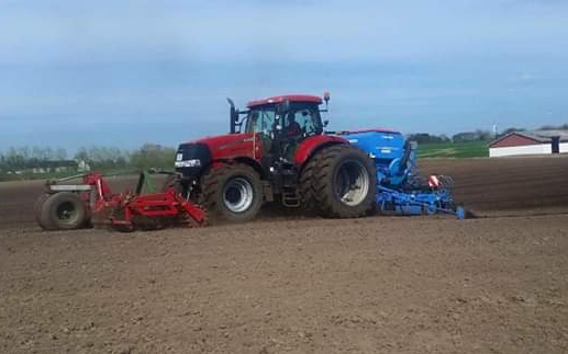 Det er en såmaskine med skiveskær, kan så i pløjet, harvet og i ubehandlet jord. meget præcis i sådybde der sikrer ensartet fremspiring. Vi kører også med såbedsharve i fronten der sikrer der sikrer et godt såbed.