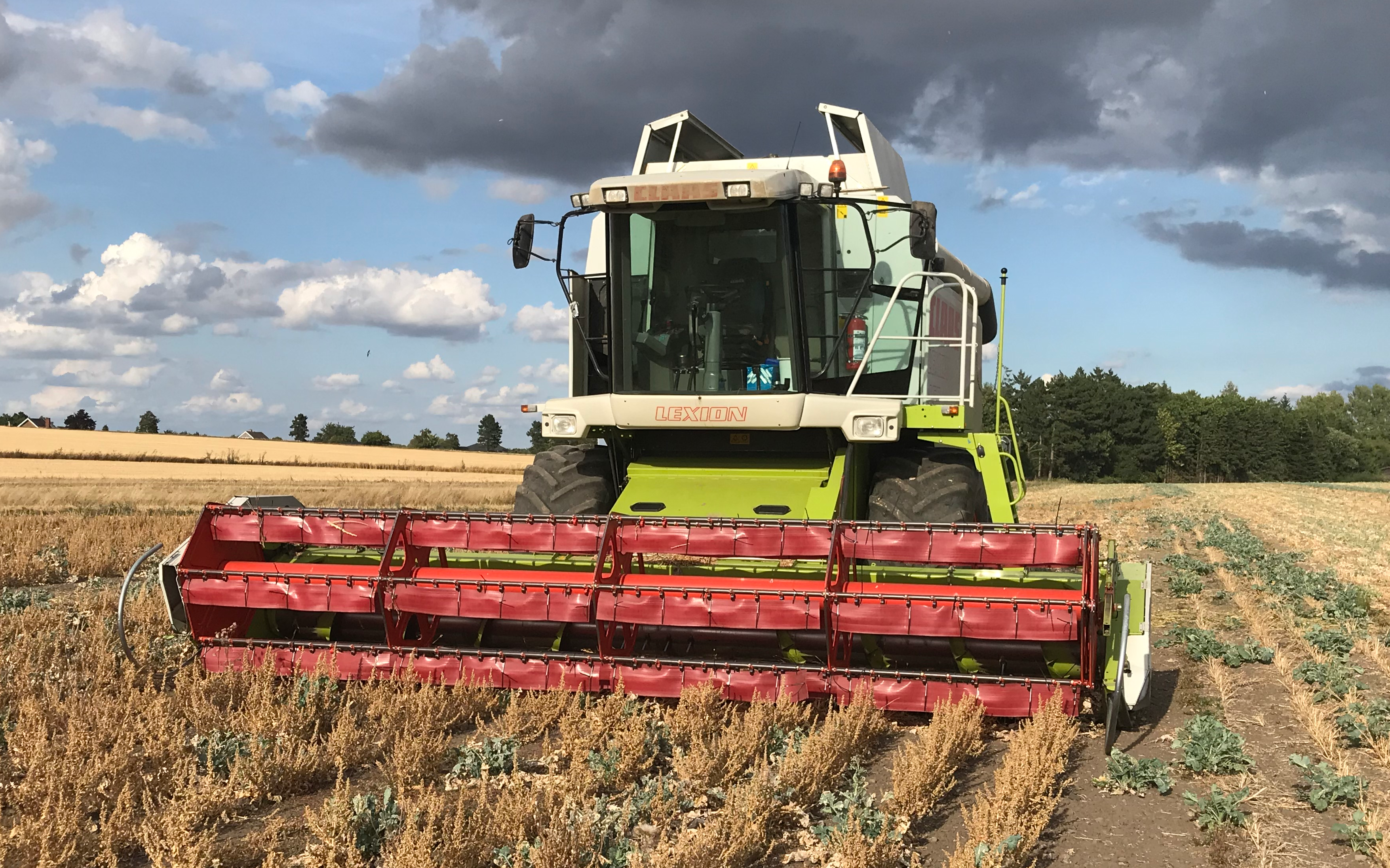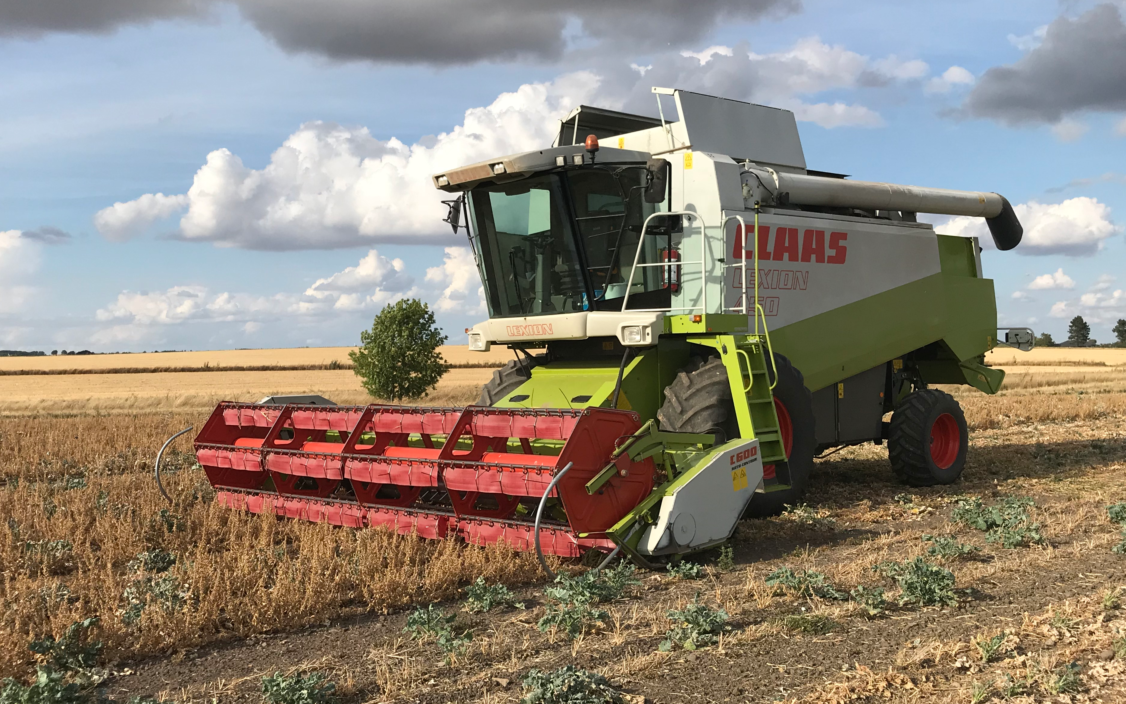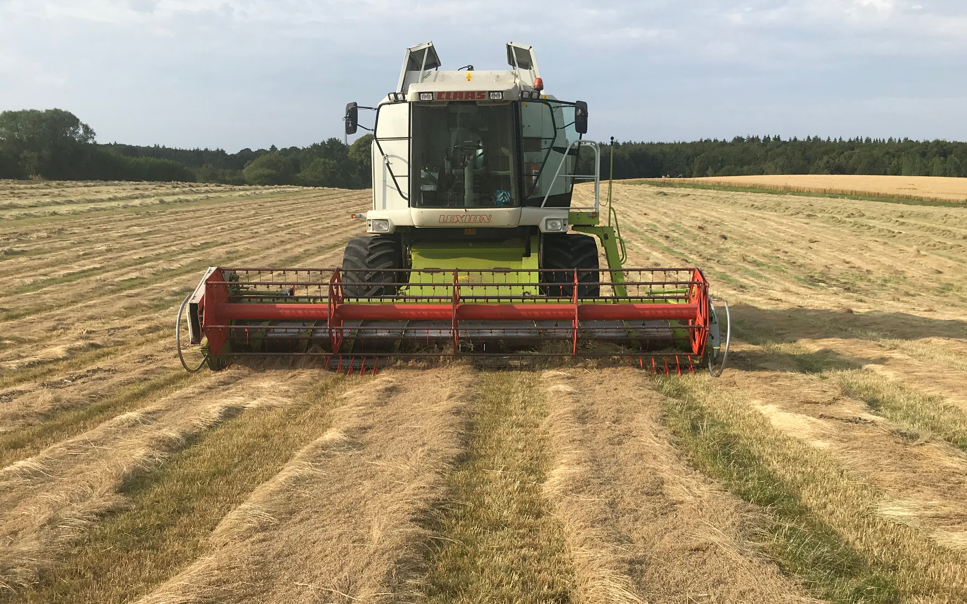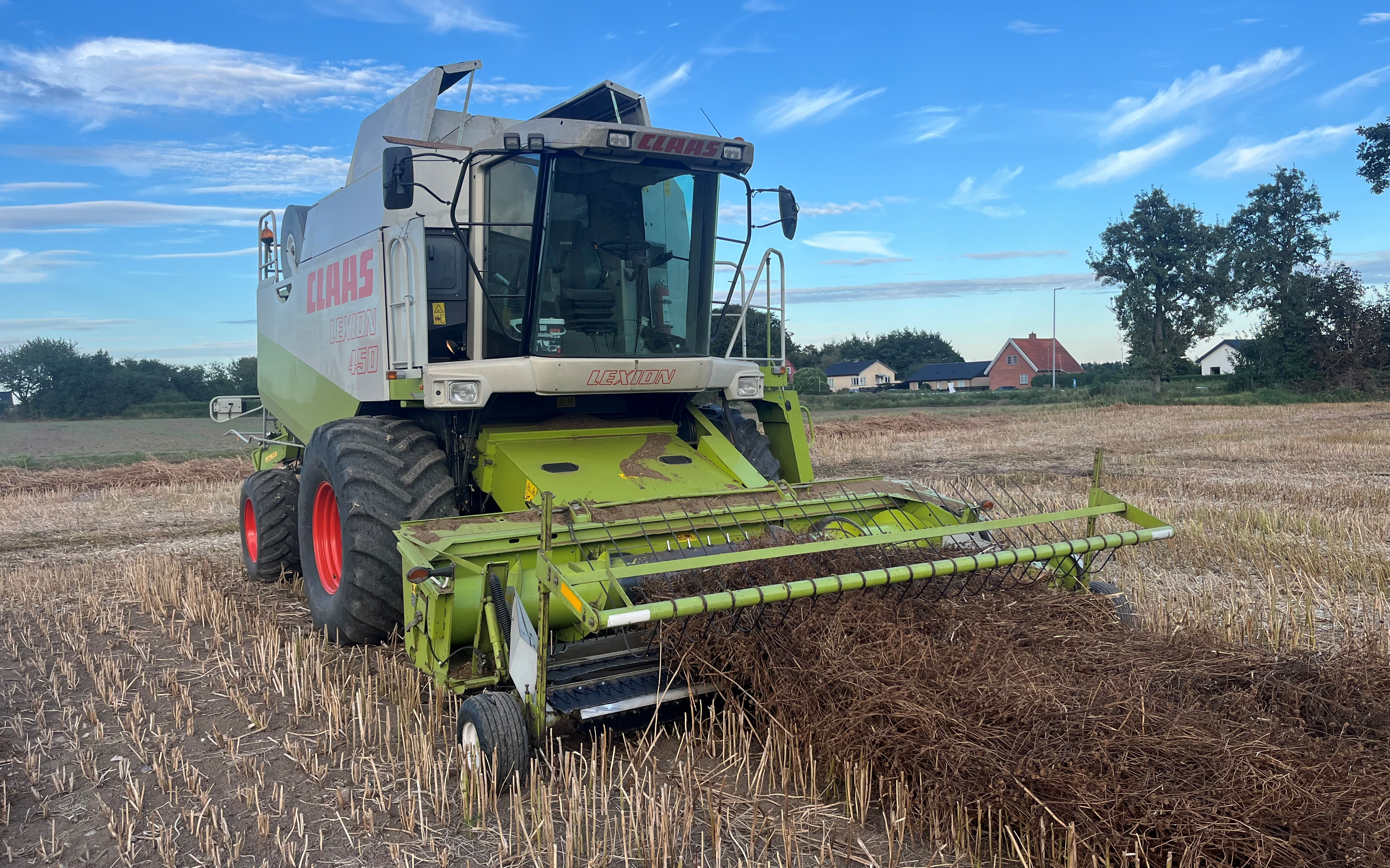 Ledig høstkapacitet tilbydes med 20 fods maskine med autolevel skærebord, Rake-up 390, sidekniv, 3D soldkasse, frøtømmeudstyr i tanken og avnespreder. Cylinder-rystermaskine som er skånsom over for halmen.