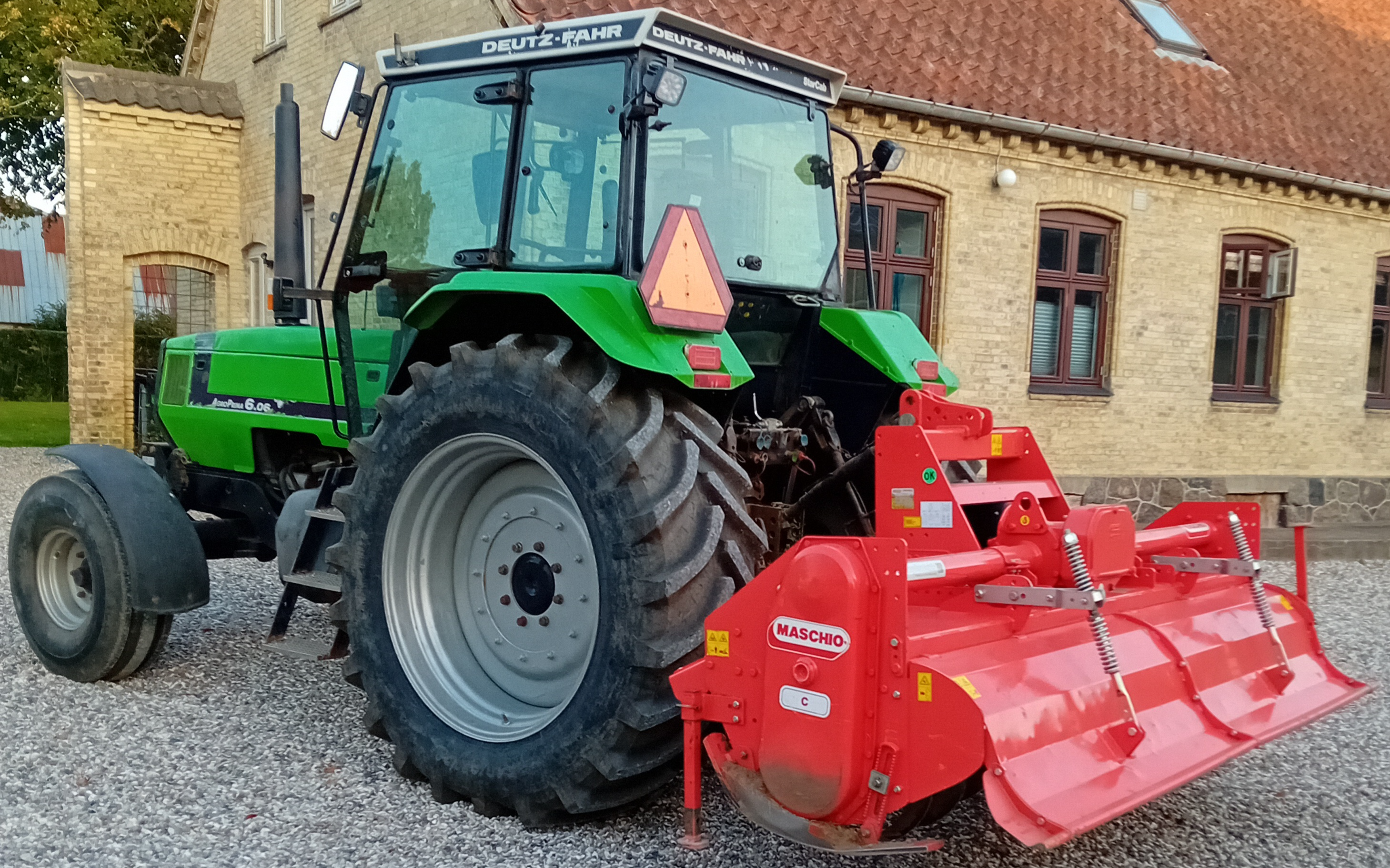 Fræser kan også lejes hvis man selv har traktor Den fræser ca. 260 cm og er ca. 300 cm bred. Den kan trækkes med 100 hk. traktor