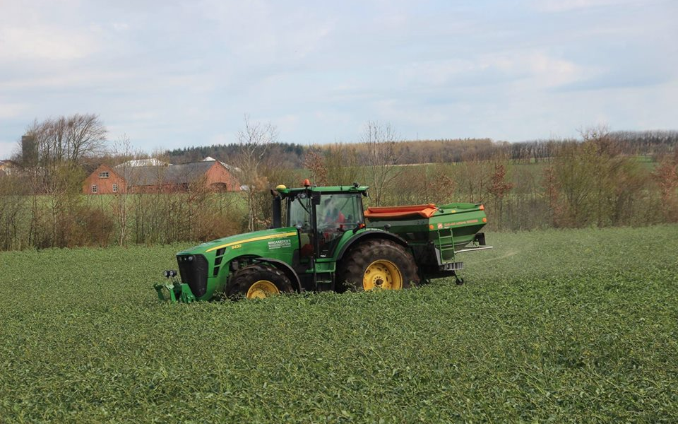 Til præcisionsspredning af kunstgødning har vi en Amazone gødningsspreder. Vi arbejder til dagligt i 30 meter plejespor i vore egne marker og kan uden problemer sprede gødning i denne arbejdsbredde.