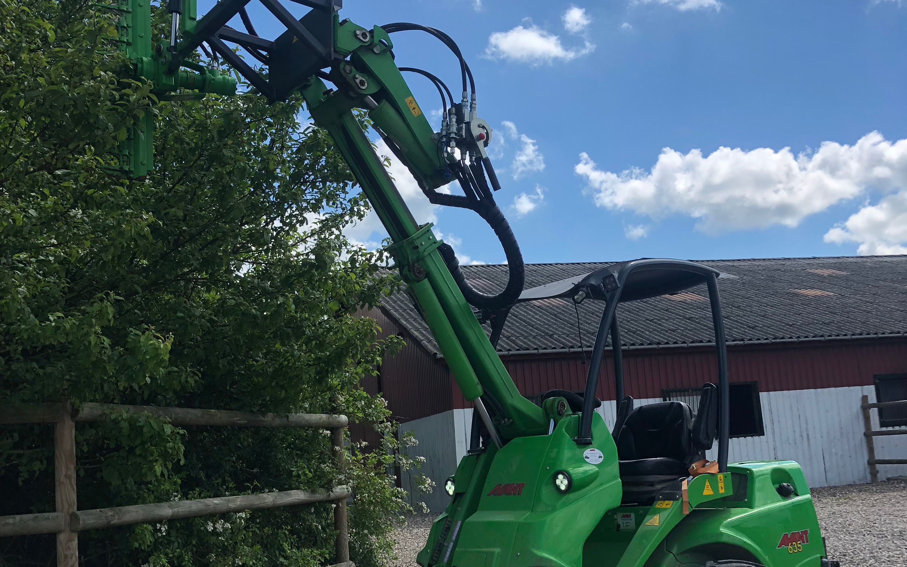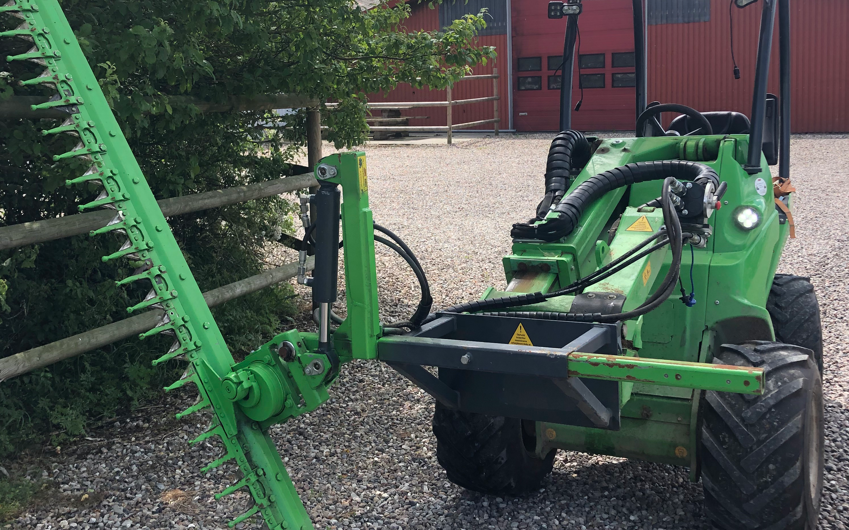 Vi tilbyder klipning af hæk og læhegn med Greentec der kan klipper op 4cm tykke grene og den er monteret på vores avant hvilket gøre det muligt stort set at køre overalt og klippe