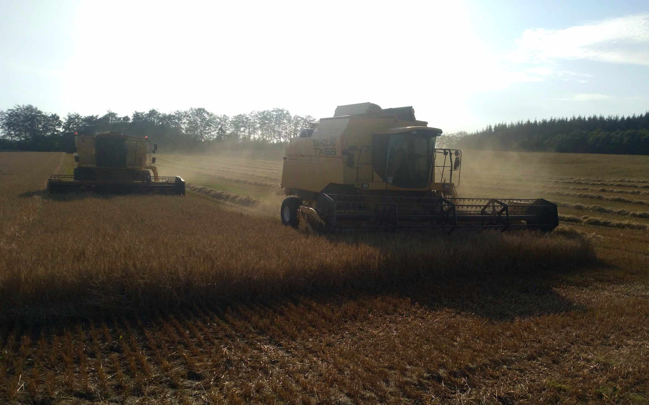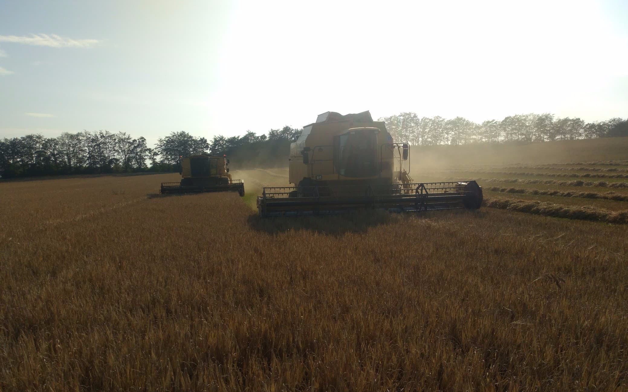 Mejetærskning med 24 og 20 fods New Holland ryste maskiner