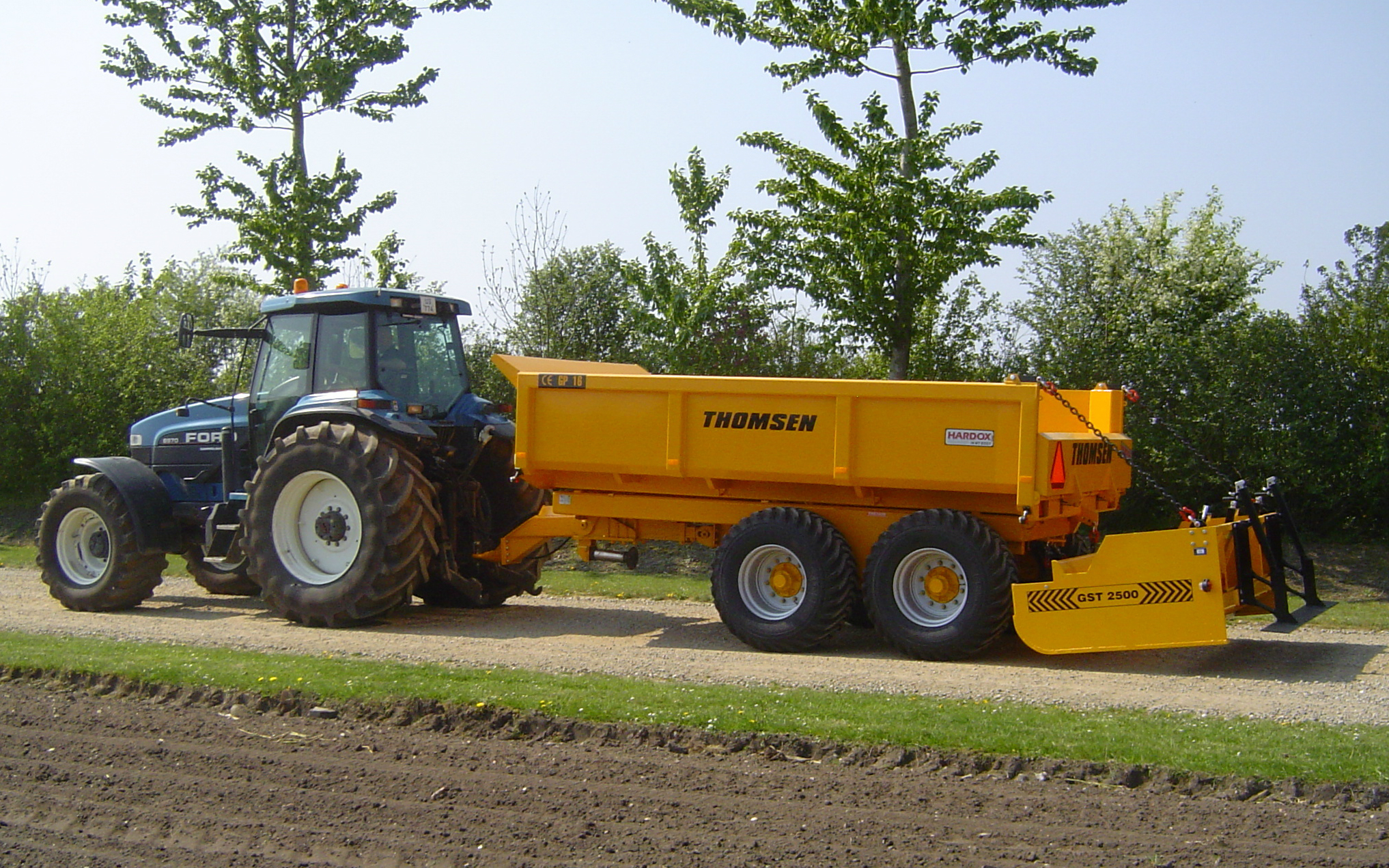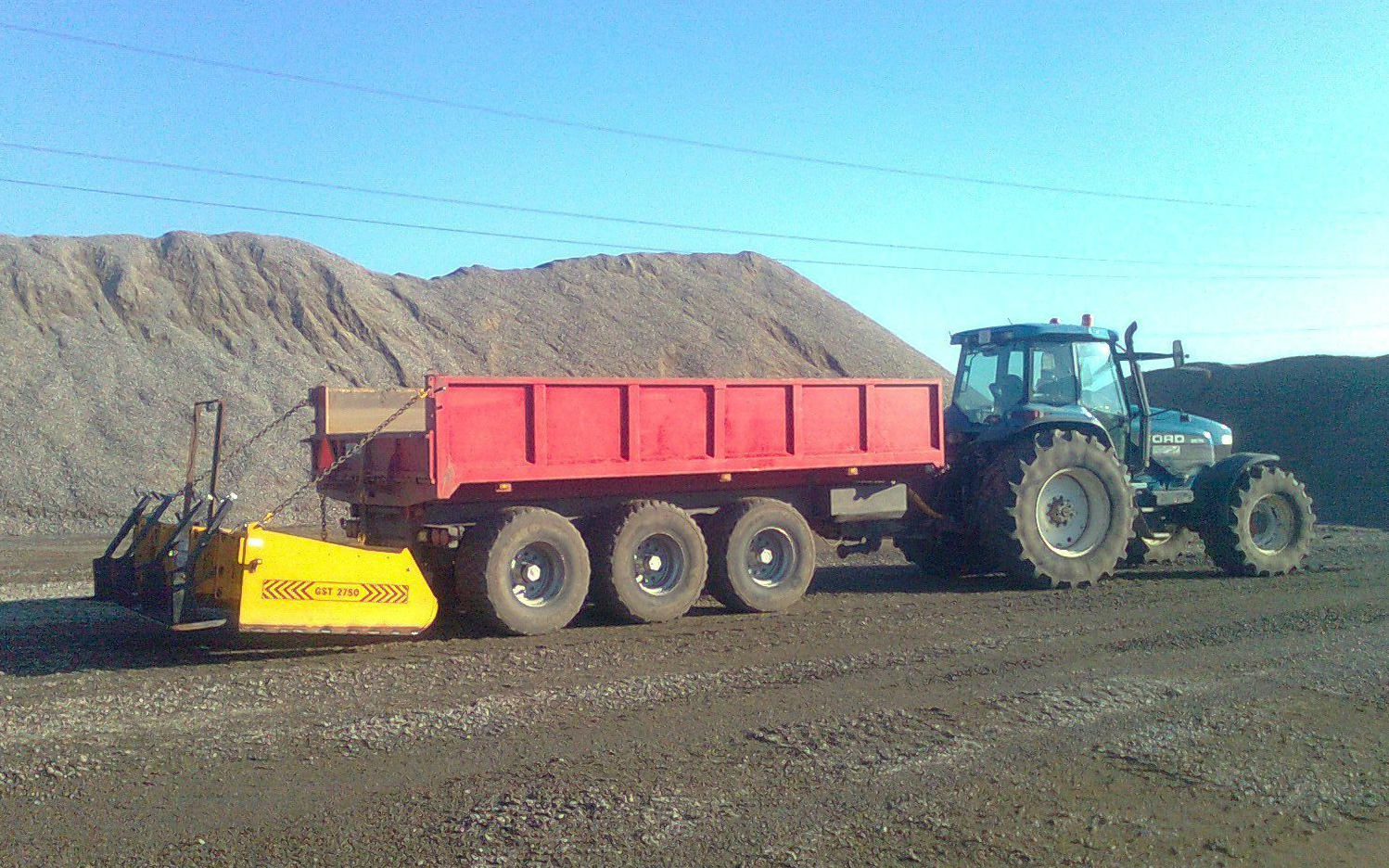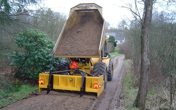 Levering og udlægning af vejmateriale. Udlæggeren har en bredde på 2.50.