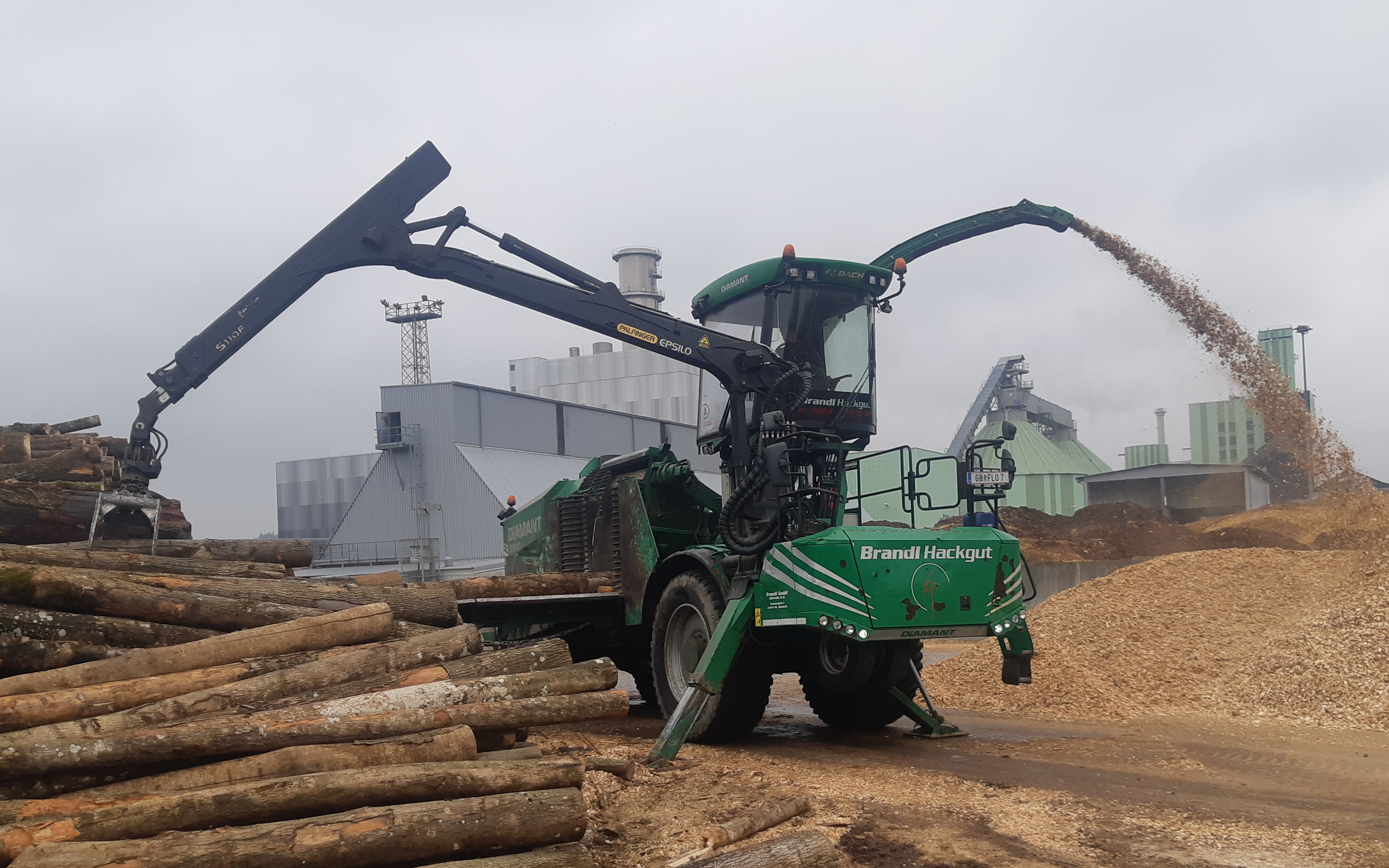 Flishugning af træ der er sammenkørt i stak. op til 300rm/timen