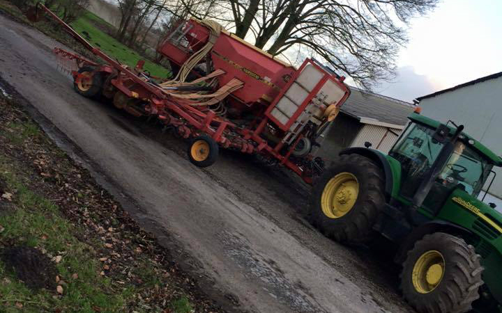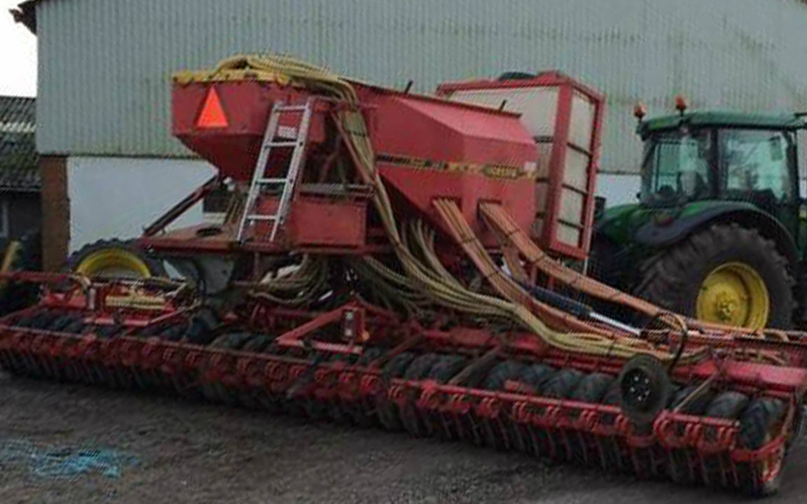 Väderstad rapid 8 meters såmaskine, med frøudstyr og flydende gødning.