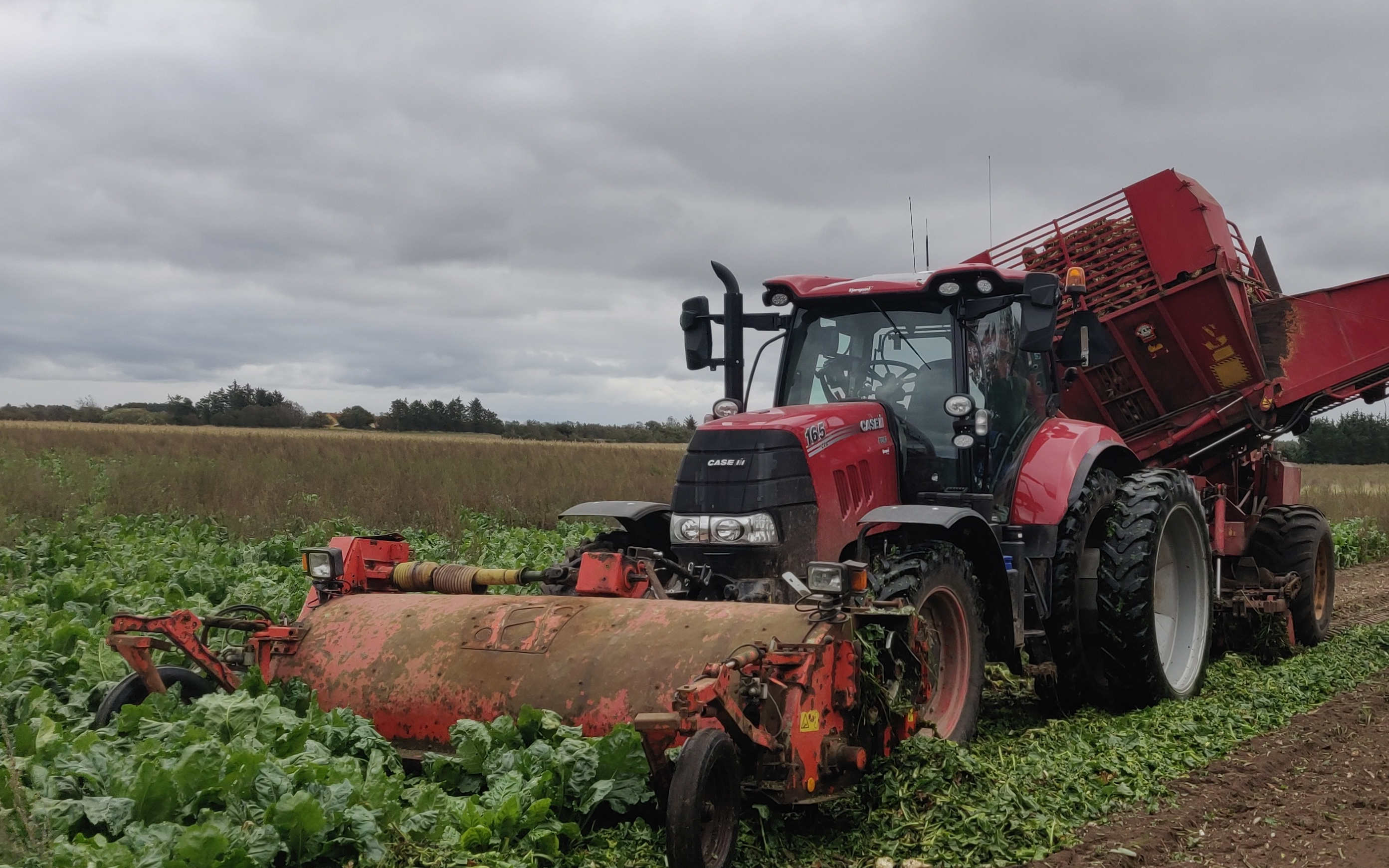 6 rækkers bugseret optager med oppelhjul. Toppene kan evt. fordeles i hele aftopperens bredde.