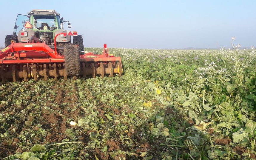 Neddeling af kraftige efterafgrøder og lange stubbe, med knivbjælke forrest på tallerken harven.Herefter opblanding i varierende harve dybde 3-13 cm i disc sektion, alt efter ønske. Til slut pakkes jorden til af dobbelt pakkervalse der efterlader jorden i mindre kamme. Traktoren er udstyret med gps.