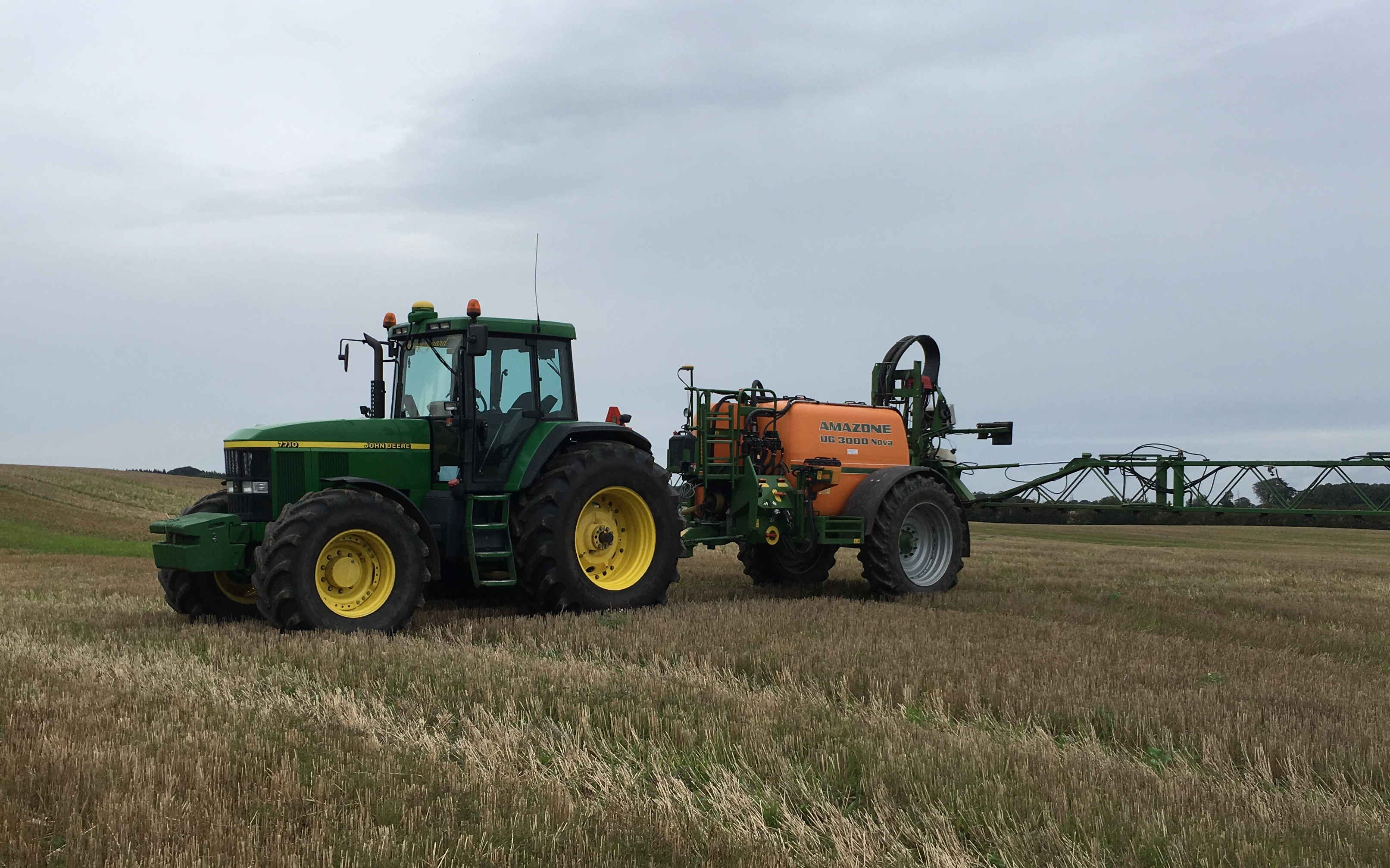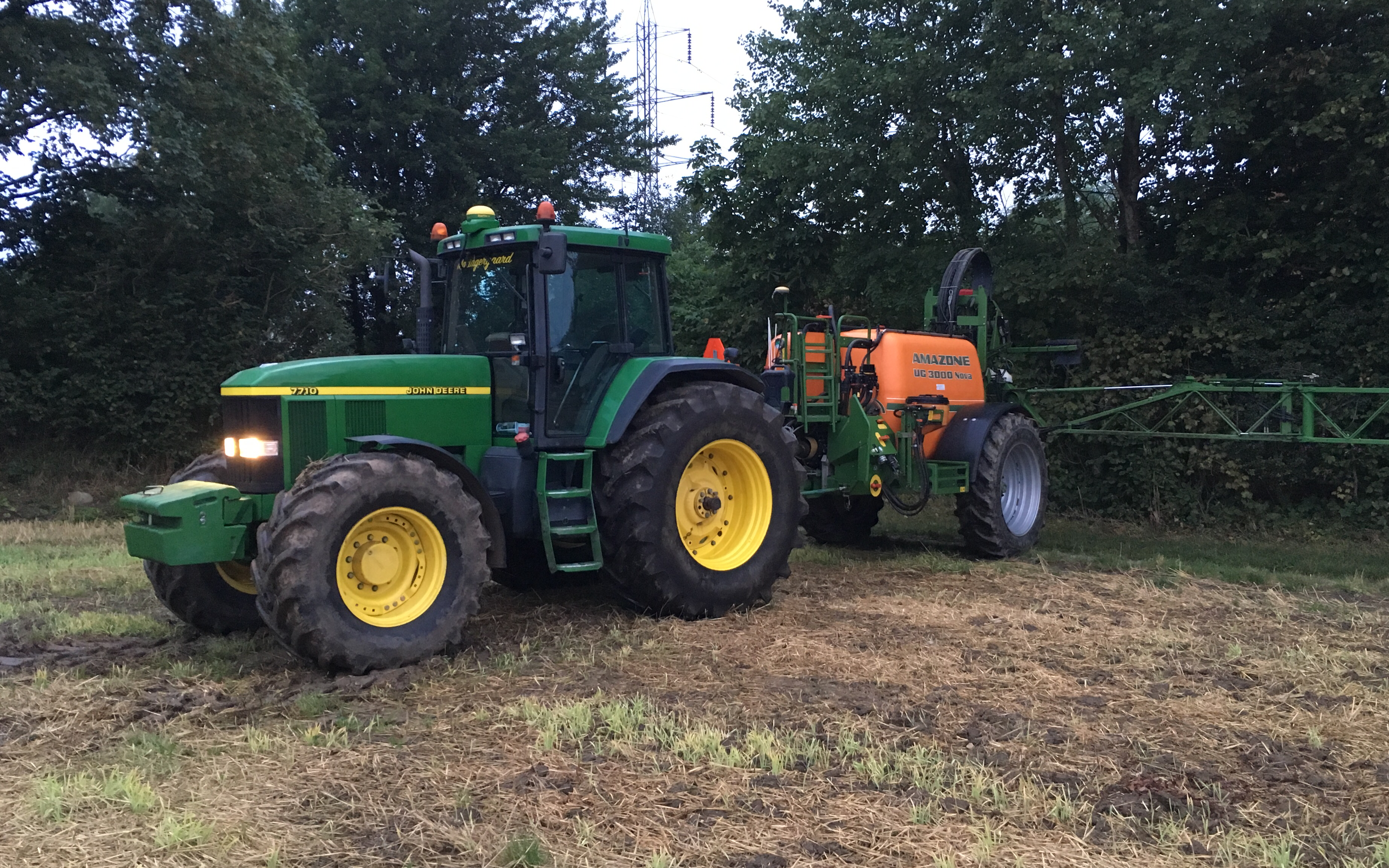 Sprøjtning med GPS og automatisk sektionskontrol Vi kører selvfølgelig med dyser der er godkendt til udbringning af Boxer efter de nye regler om afdriftsreduktion pr. 1 august 2017. Sprøjtning af div. afgrøder: Korn, Raps, Majs, Hestebønner osv. Vi kører med sprøjtehjul med en god frihøjde. Der kan også laves aftale omkring kemi.
